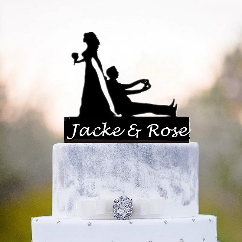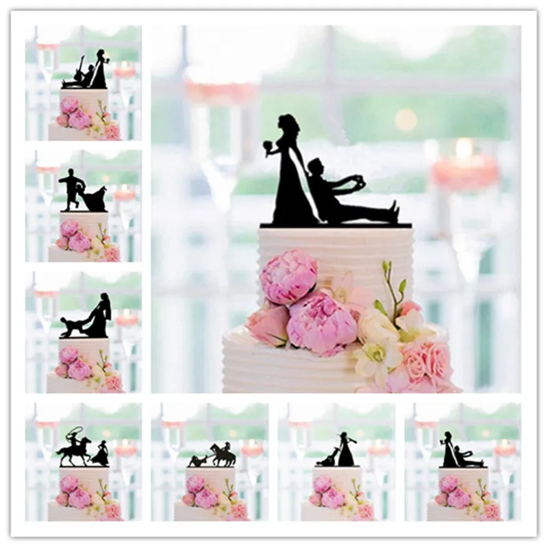 Персонализированные смешанный стиль Свадебный торт Топпер черный акрил Невеста и жених силуэт украшения торта