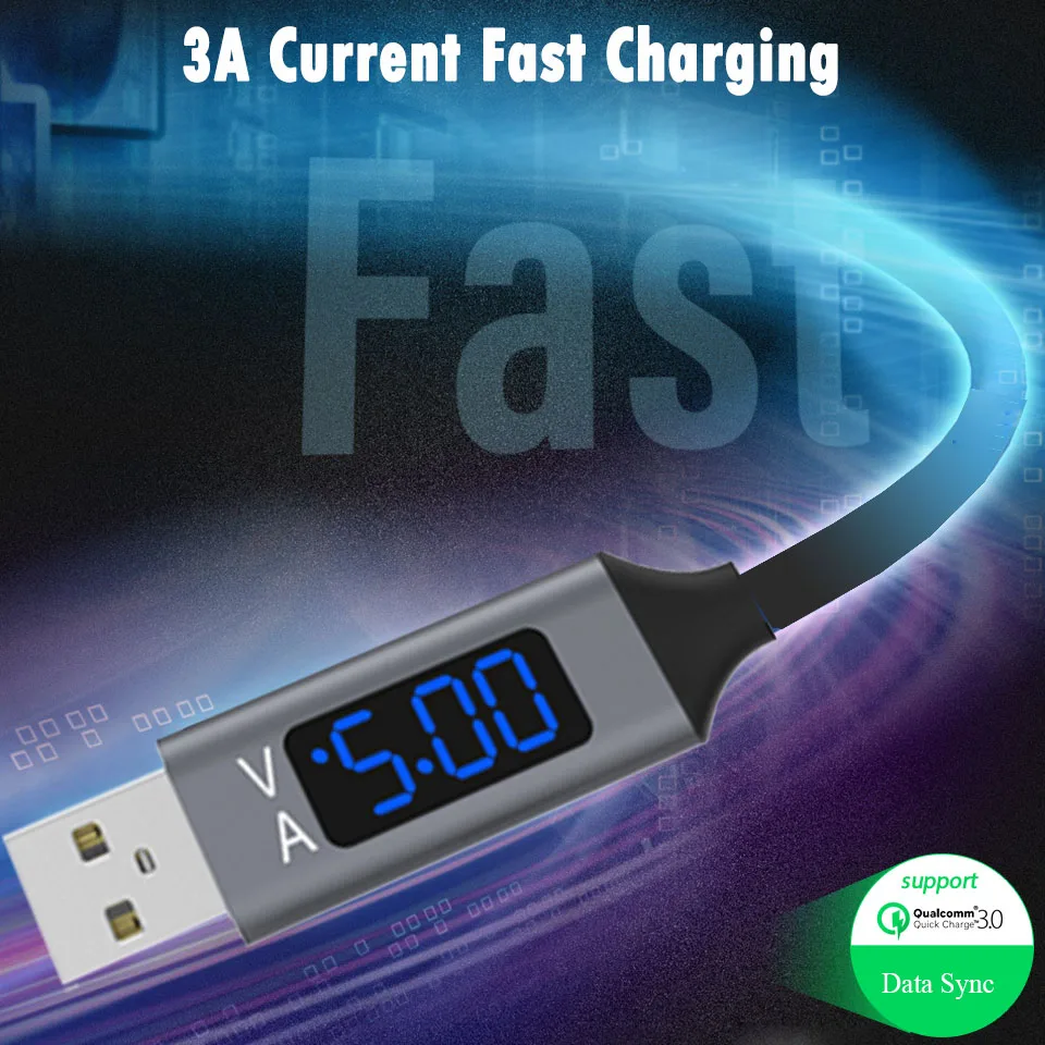 Кабель для быстрой зарядки с светодиодный дисплеем, который отображает напряжение и ток зарядки в режиме реального времени. Автоматическое переключение V/A каждые 2s. Вы будете чувствовать себя более безопасно при отслеживании V/A. И вы можете проверить качество зарядного устройства телефона, используя этот светодиодный кабель дисплея. Кроме того, без пробуждения телефон, вы можете узнать телефона составляет около полного заряда в режиме реального времени зарядный ток никель-металл-опускается до 0,1-0.3A.