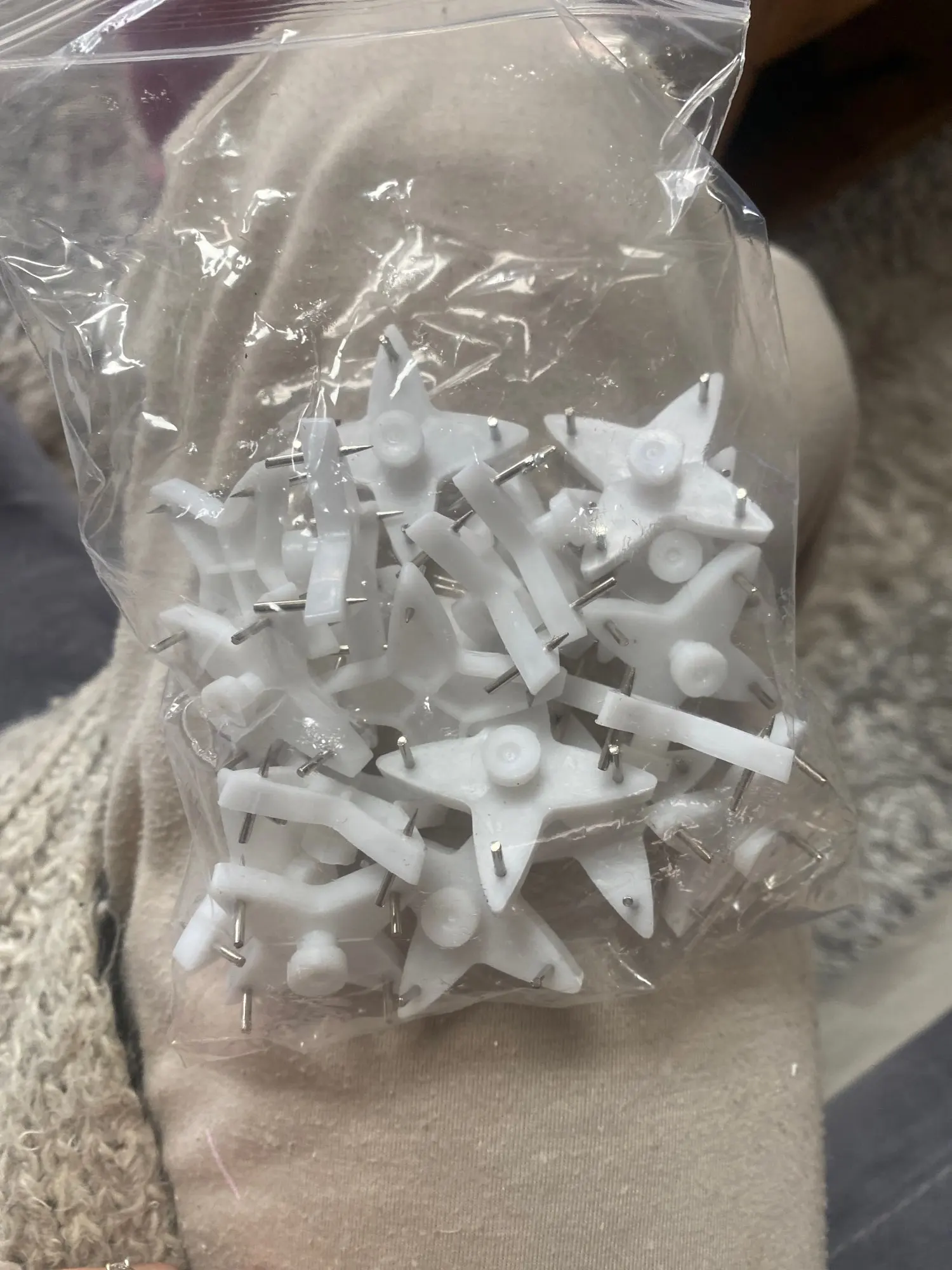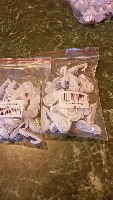 Пришли все 40 штук, как заявлено. Все гвоздики на месте (в другом месте была такое, что для 1 крючка креплений-гвоздиков не хватило). Тут пара крючков было с пустыми пазами, но гвоздики от них нашлись в пакетике. Все хорошо.