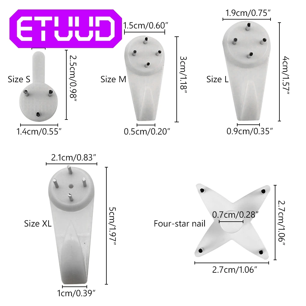 40 шт. многофункциональные белые пластиковые Невидимые настенные фоторамки для фото, зеркальные часы, крючок для ногтей, вешалка, бесшовный гвоздь