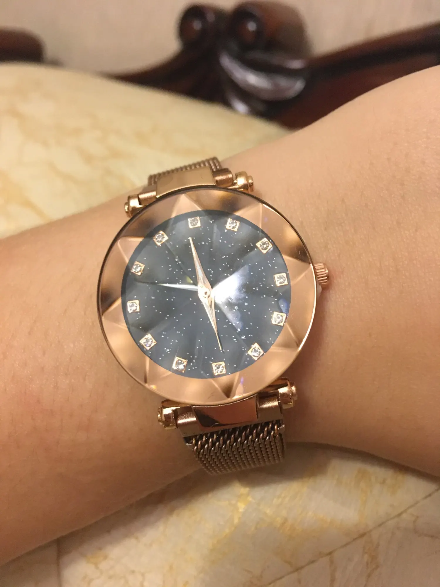Часы наручные женские кварцевые с магнитной застежкой, люксовые модные, с изображением звёздного неба, со стразами