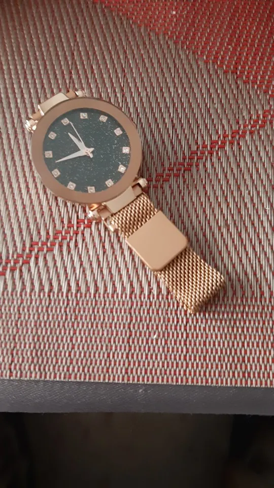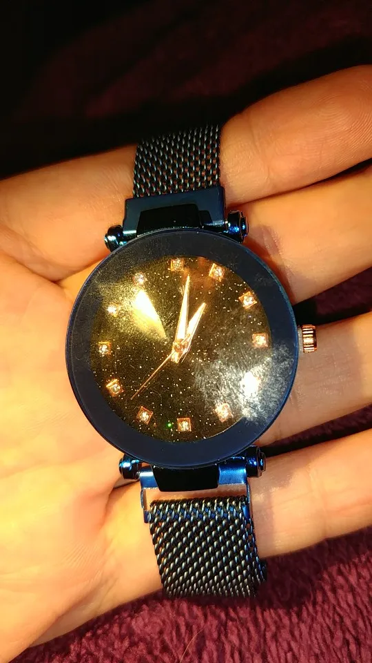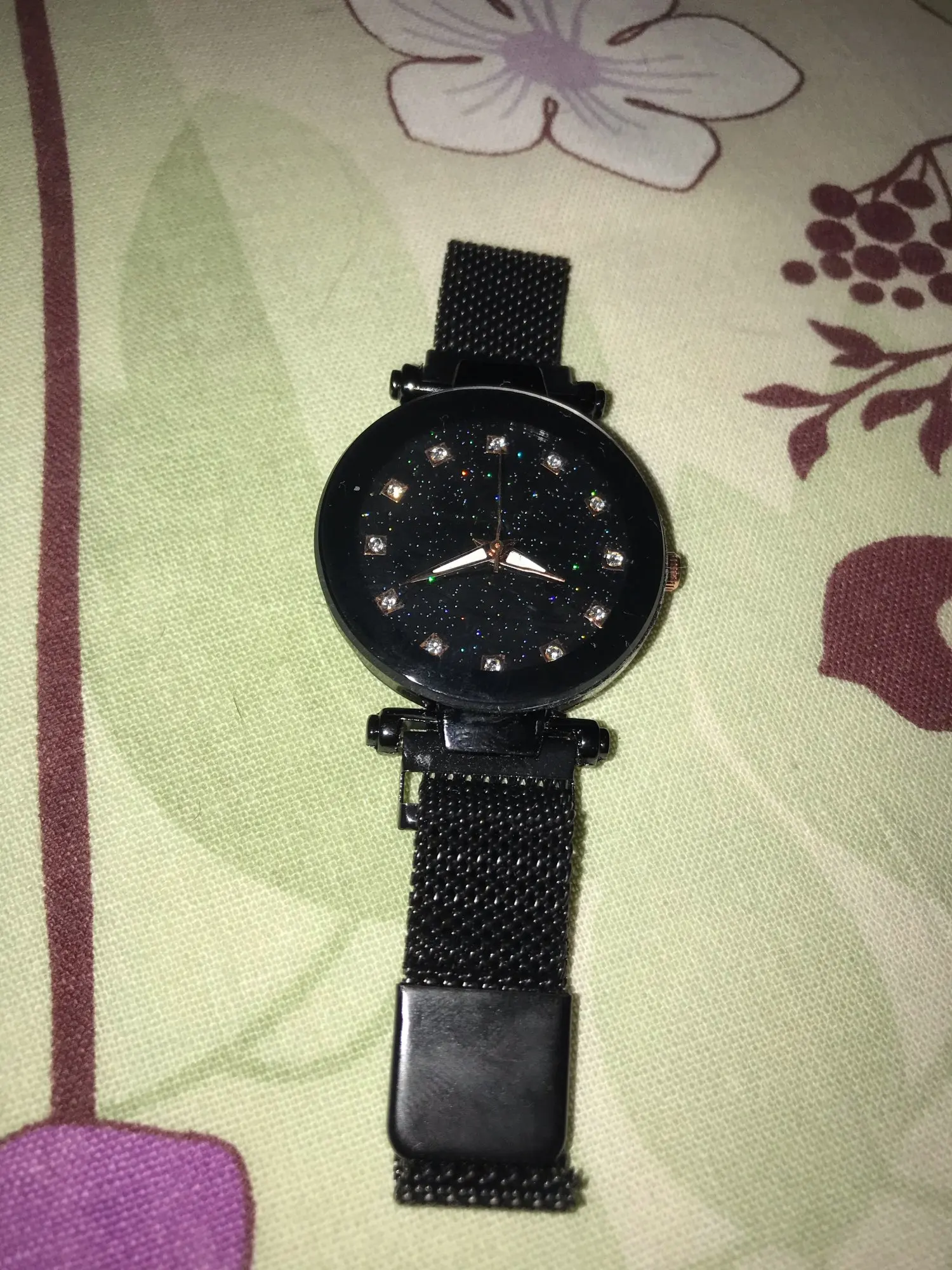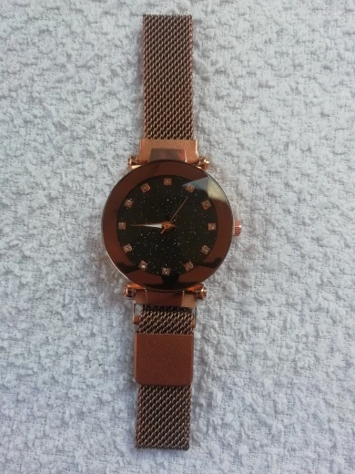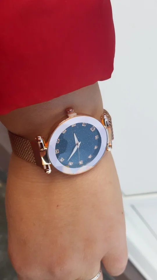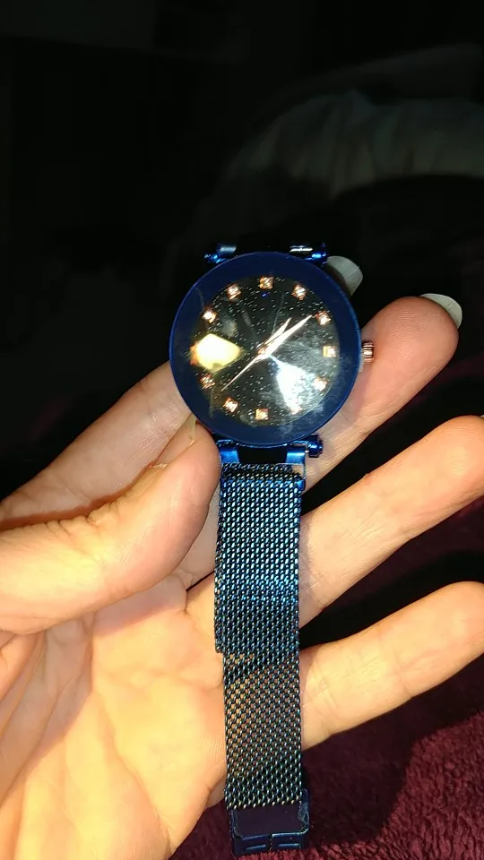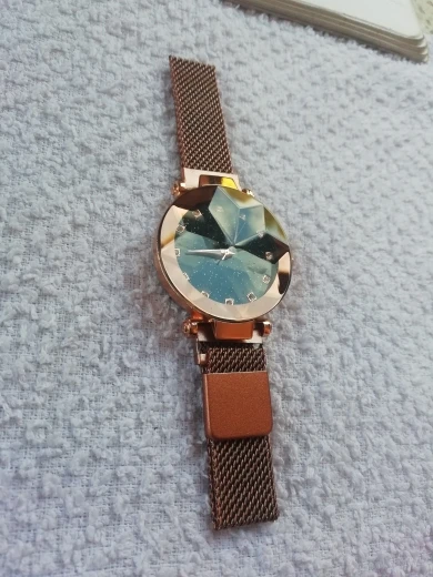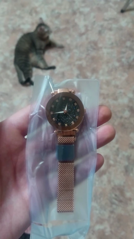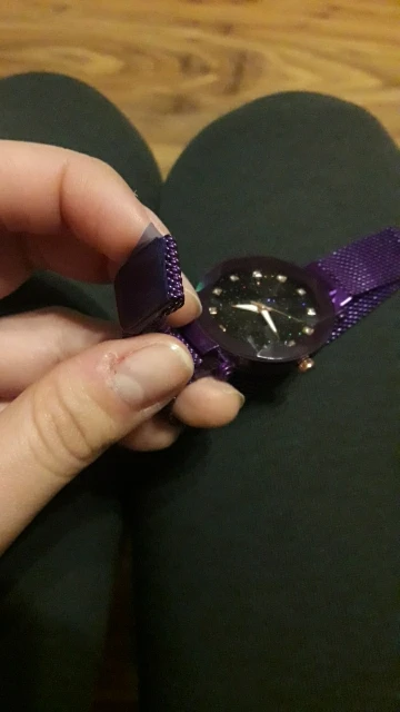 Красивые часы, действительно быстрая доставка. Быстрый Совет: на магните есть защитное покрытие, которое удерживает часы закрытым. Оживите его, и магнит будет иметь более сильную фиксацию. Мне нравится, как регулируются эти часы, так как у меня есть маленькие запястья. Теперь у меня есть четыре этих замечательных часов.