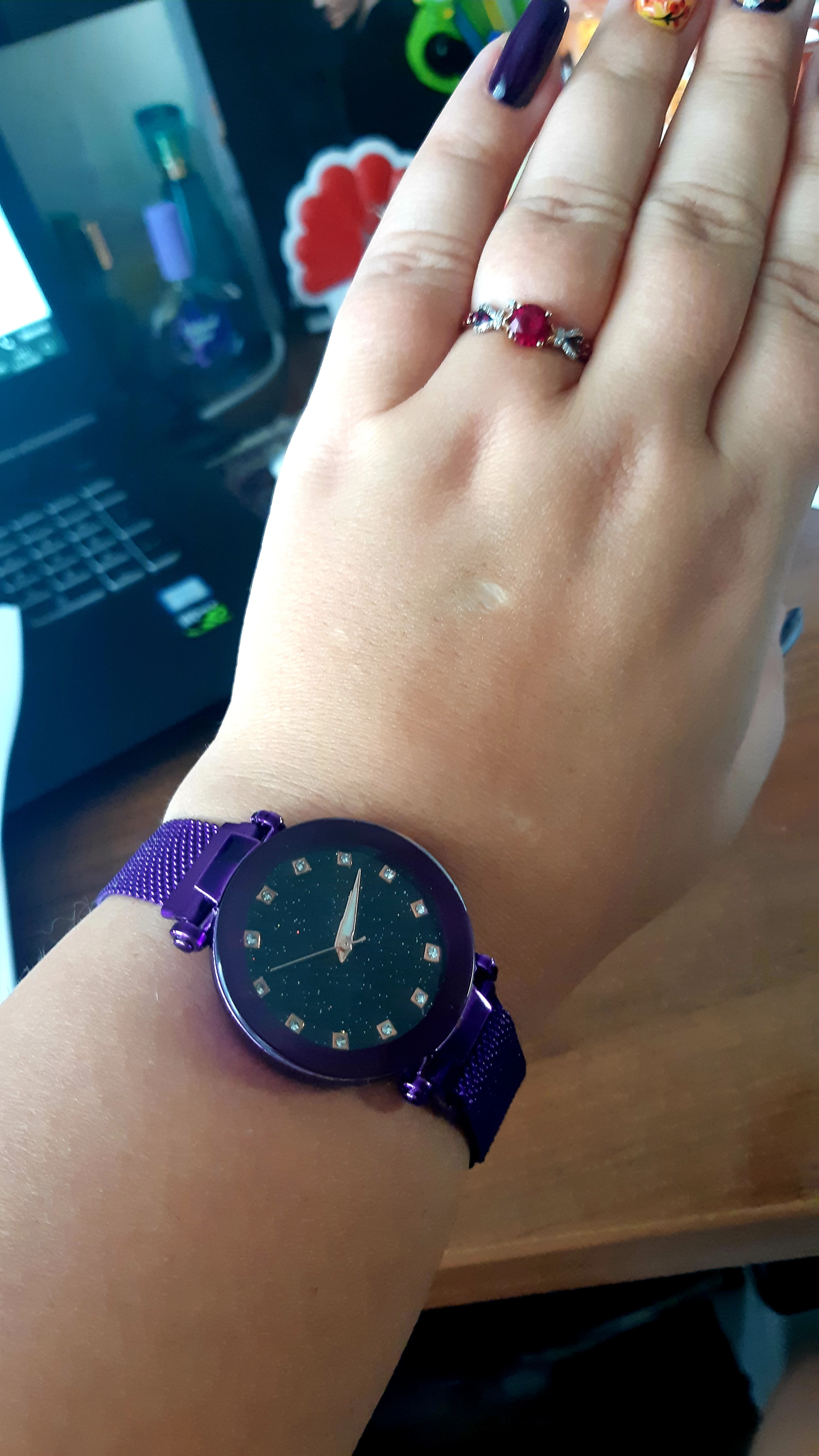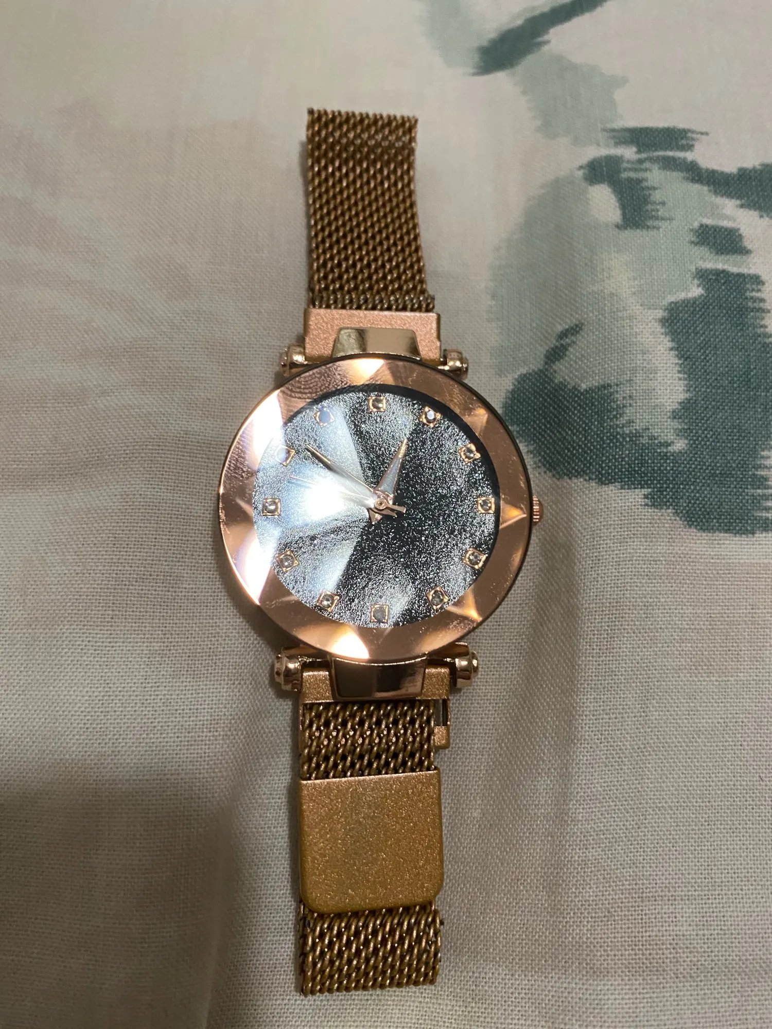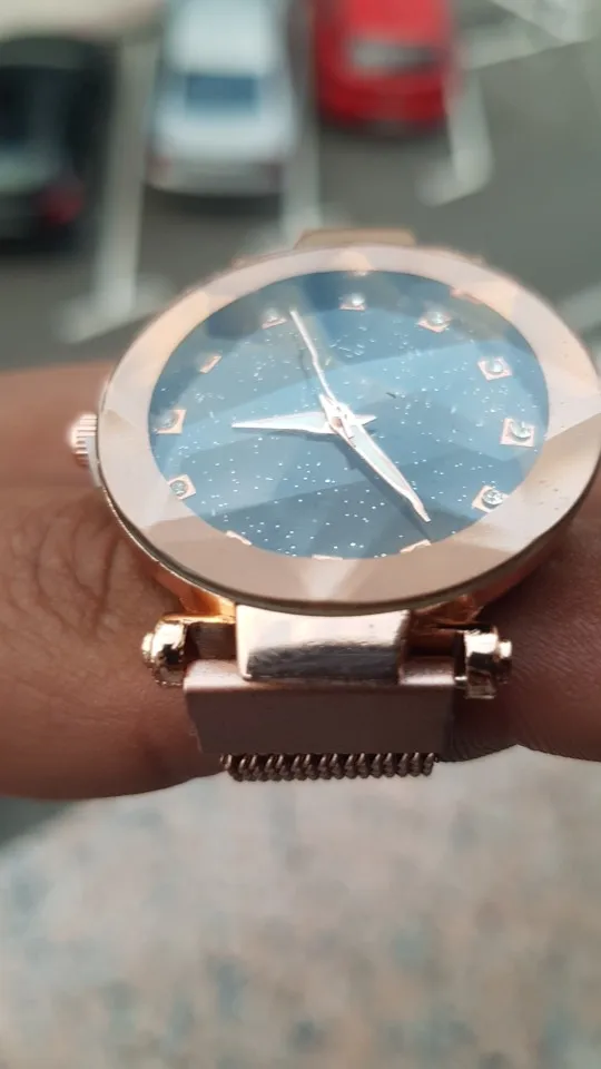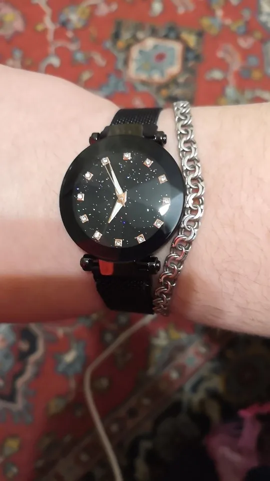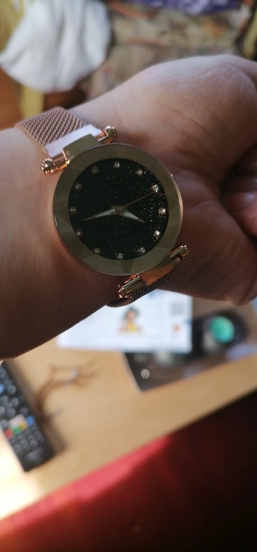 Красивые часы, действительно быстрая доставка. Быстрый Совет: на магните есть защитное покрытие, которое удерживает часы закрытым. Оживите его, и магнит будет иметь более сильную фиксацию. Мне нравится, как регулируются эти часы, так как у меня есть маленькие запястья. Теперь у меня есть четыре этих замечательных часов.