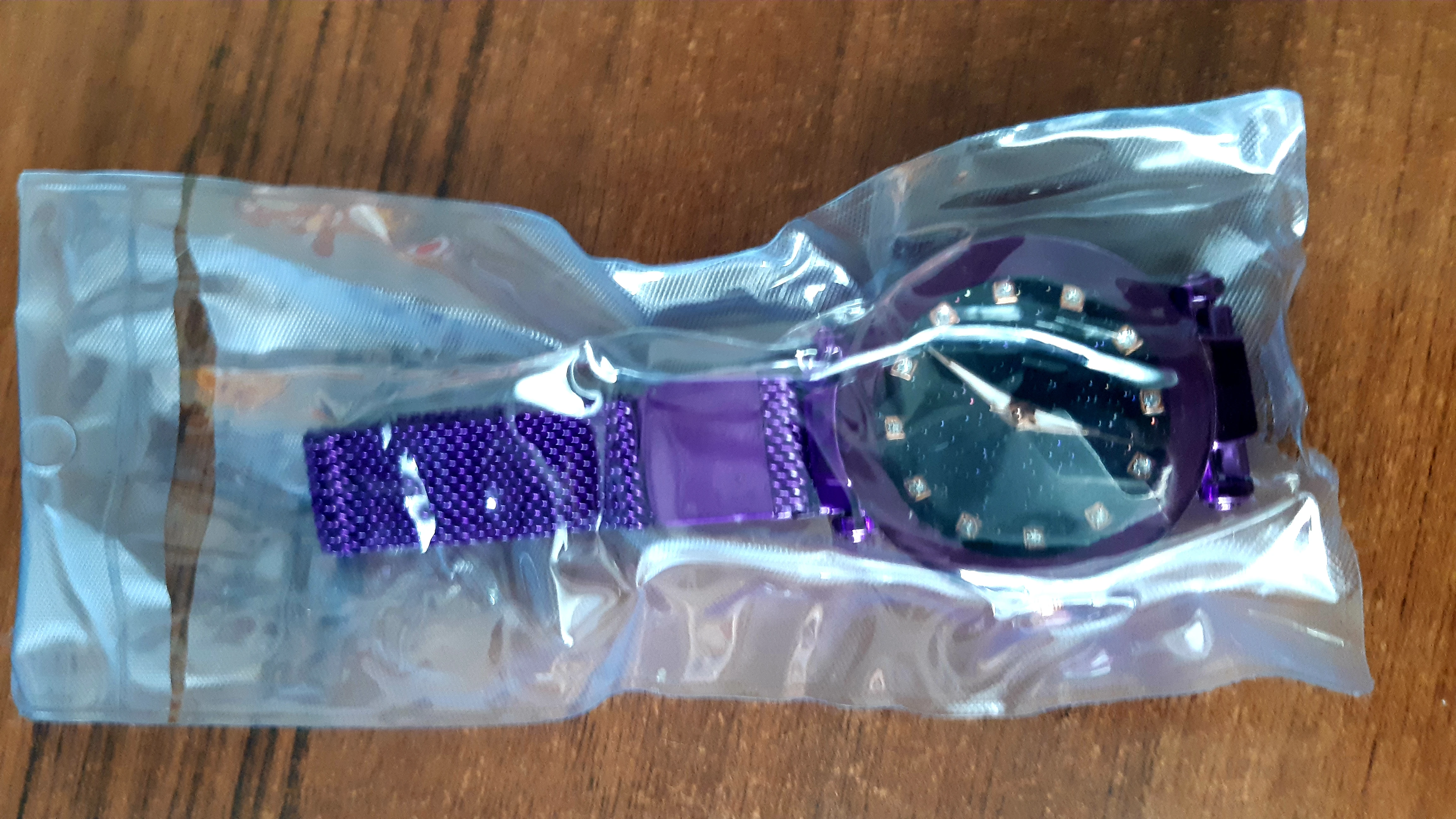Часы неплохие, металлический ремешок с магнитной застежкой. В жизни они меньше, чем кажутся на фото. И на стекле была чёрная полоса, видимо, краска. Изначально расстроилась, т.к. стереть ничем не могла, но поскребла иглой и все убралось. Дошли в целости, и упакованы были хорошо. Вероятность того, что они могли разбиться во время транспортировки, была очень мала. Но, доставка до Тюмени была долгая. Шли они больше двух месяцев. Заказала 17 августа, а получила 26 октября.