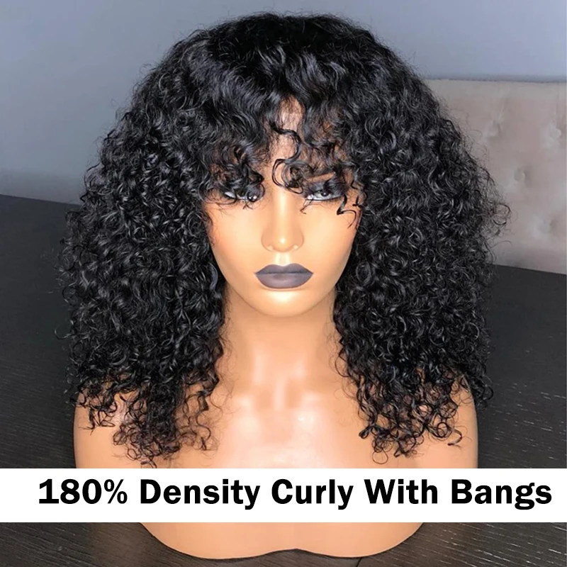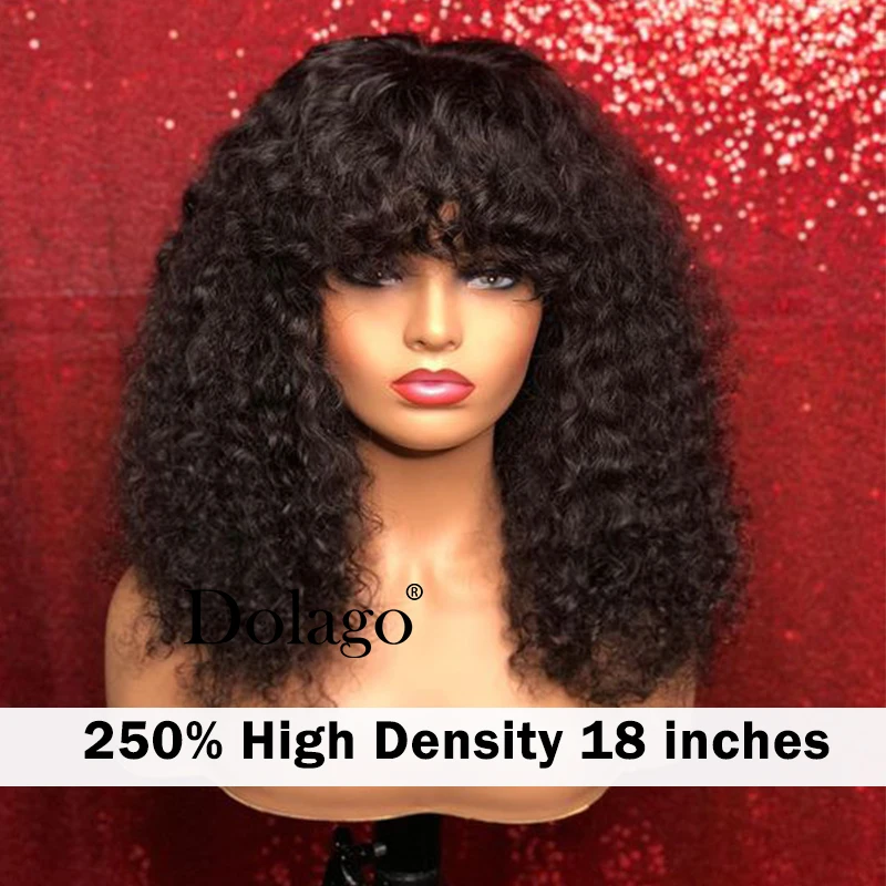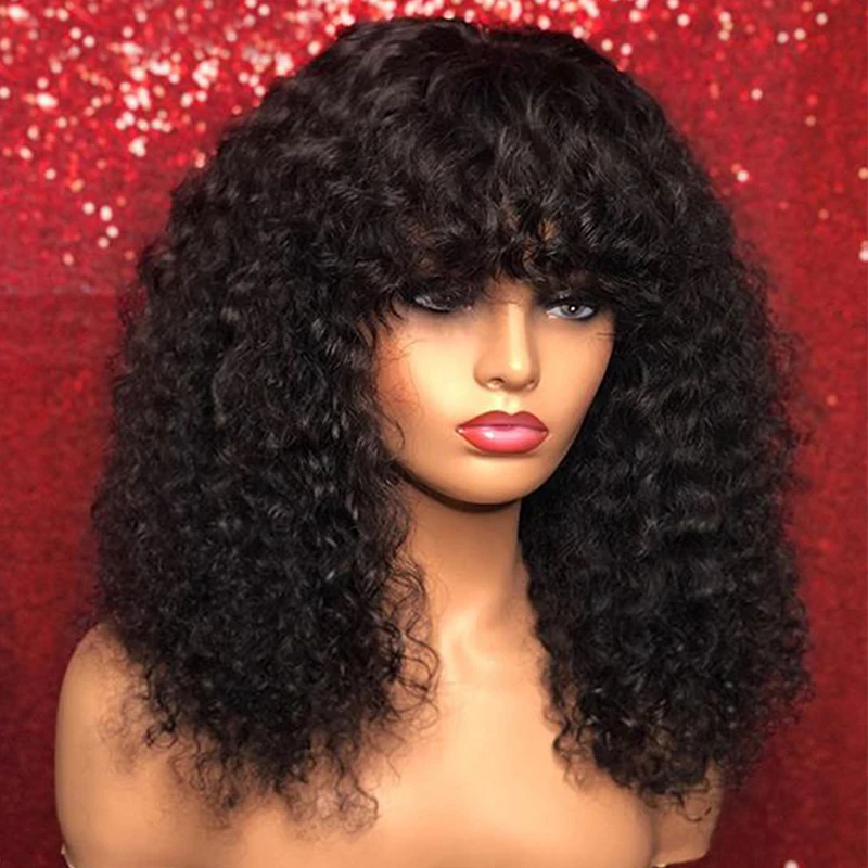 Парик из 360 бразильских человеческих волос с глубокой кудрявой передней частью, с челкой, плотность 250, 13x4