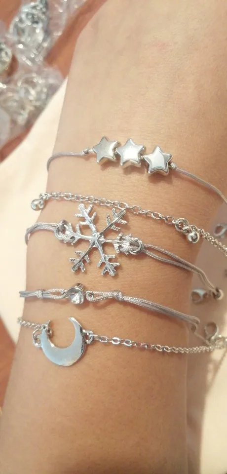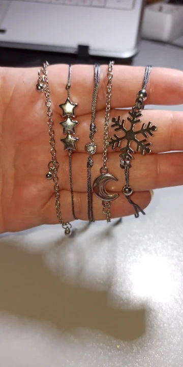 Быстрая доставка и хорошая упаковка. Товар не совсем такой, как в описании. Фото отличается, луна не та же, блестящий браслет выглядит не так, как на фото есть браслет с висящими кругами, тот, который пришел ко мне, были сферами. Обратите внимание, что материал на фото имеет лучший материал. Нить браслета слаба. В общем, у них хорошее впечатление от более качественных брендов
