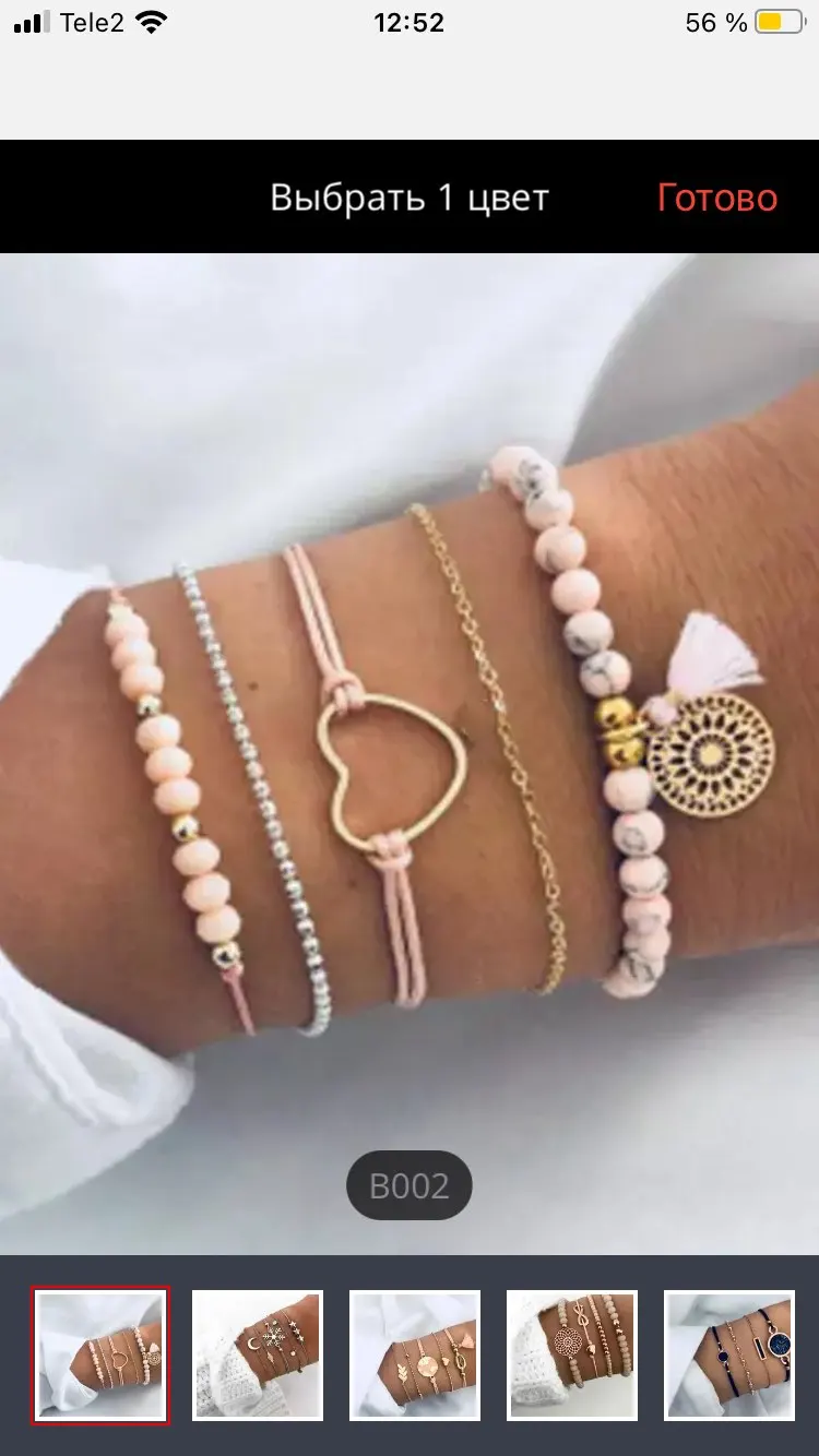 Выглядит набор дешево. У меня тонкие запястья, все браслеты мне велики, хотя они регулируются по размеру, но только в сторону увеличения.