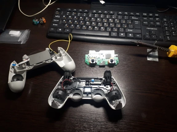 беру второй раз уже писал комент, даполню. Вслучае когда ведет в сторону не сильно (если тронуть слегка стик то перестает вести) то можно припаять резистор на 100 kOm в плечо противоположной стороны потенциометра.(если ведет в право то резистор нужно припаивать к среднему и левому контакту потенциометра, и на оборот) Если ведет немного сильнее то резистор нужен 75кОм Если еще сильнее ведет (как у меня в видео) то резистор нужен на 50кОм или меньше. Метод проверял на геймпадах первой в второй версиях. подробнее на моем канале ютюб Dimonflip