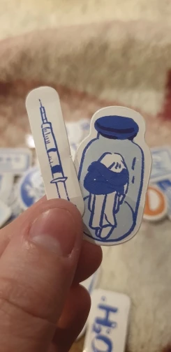 брала за 58 р, пришли за месяц в моск. обл. наклейки должны правильно называться "всю жизнь на нейролептиках", ну а хули, даже изображение шприцов для галоперидола есть)0))0 ну вообще наклейки очень классные, качественные и жизненные не знаю правда нахуй они мне нужны, я дневники не веду, писать, наверное, уже разучилась, даже на ебало ничо для инсты не клею, да и нет у меня инсты никакой, просто по фану взяла ....и у меня уже целый склад таких наклеек, бля......... крч, все, кто с детства болеет всякой сранью, если тут есть такие, я с вами✊✊✊ а наклейки 10/10, берите, не пожалеете