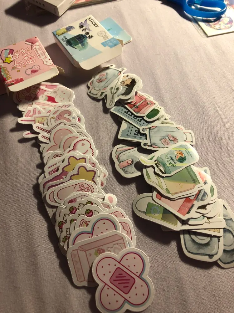 Действительно милые и качественные наклейки! Поставляется в матовой и прочной коробке, так что все наклейки хороши. 23 разных дизайна и каждый из одного дизайна имеет две наклейки, поэтому в целом, за эту небольшую цену вы получите несколько наклеек! Я действительно поддерживаю этого продавца!