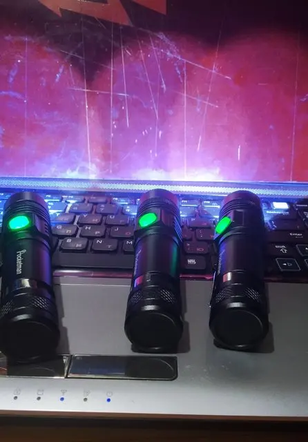 Хороший фонарик , светит ярко. Работает в трëх режимах: максимальная яркость, средняя яркость и стробоскоп. Режимы меняются нажатием на кнопку включения. При зарядке светится красным, а по окончании зарядки зелëным кнопка.