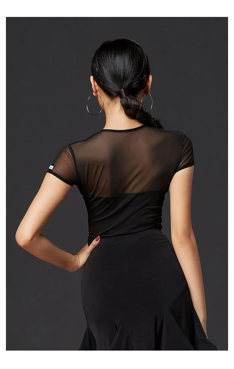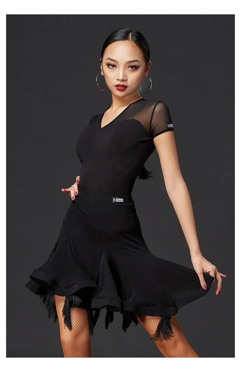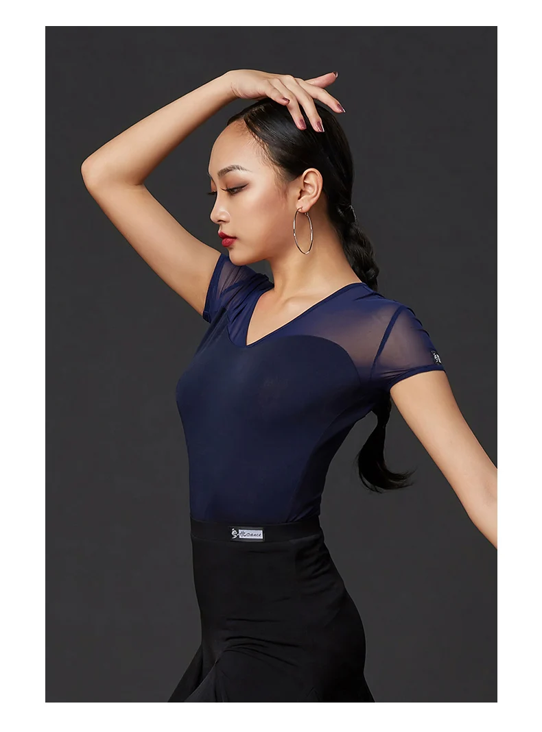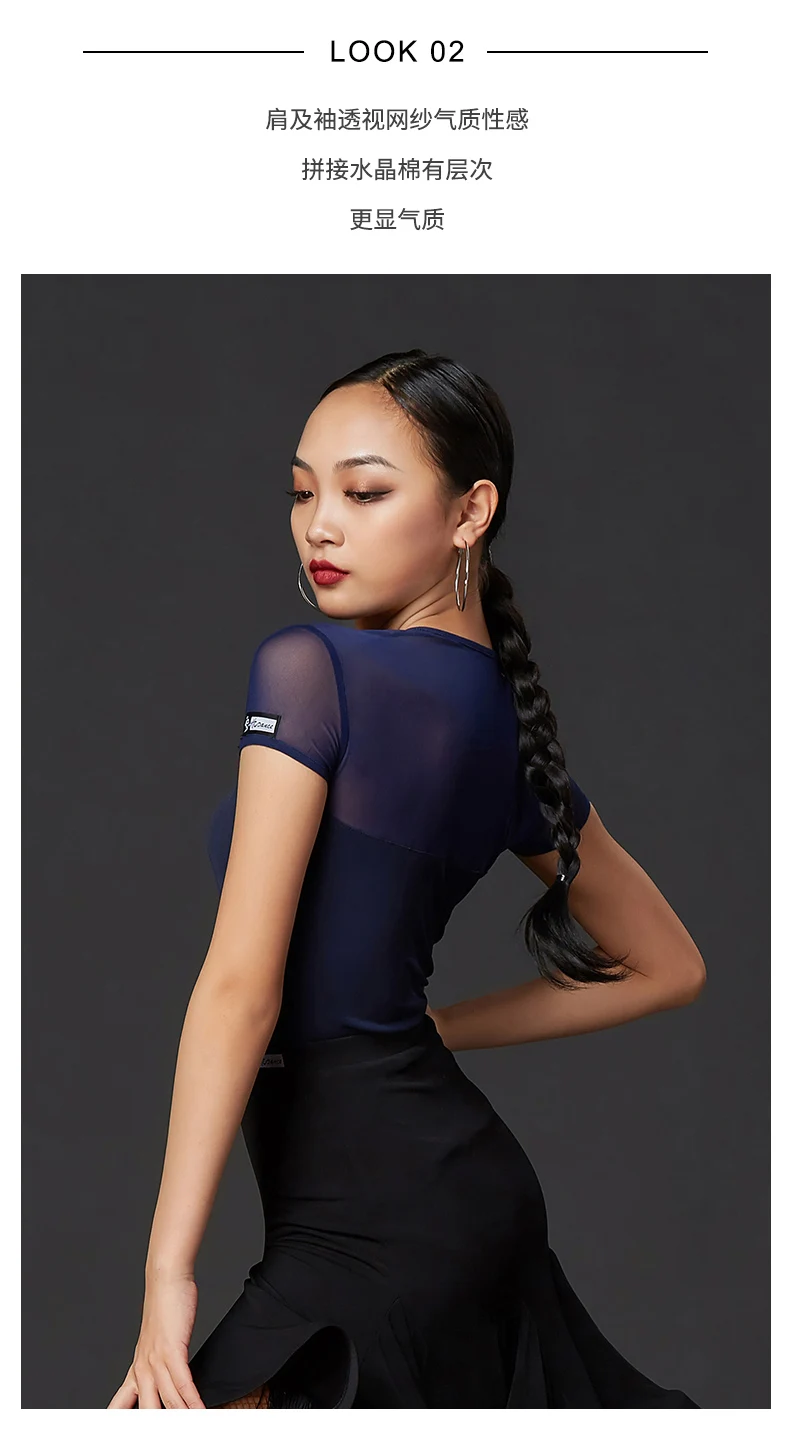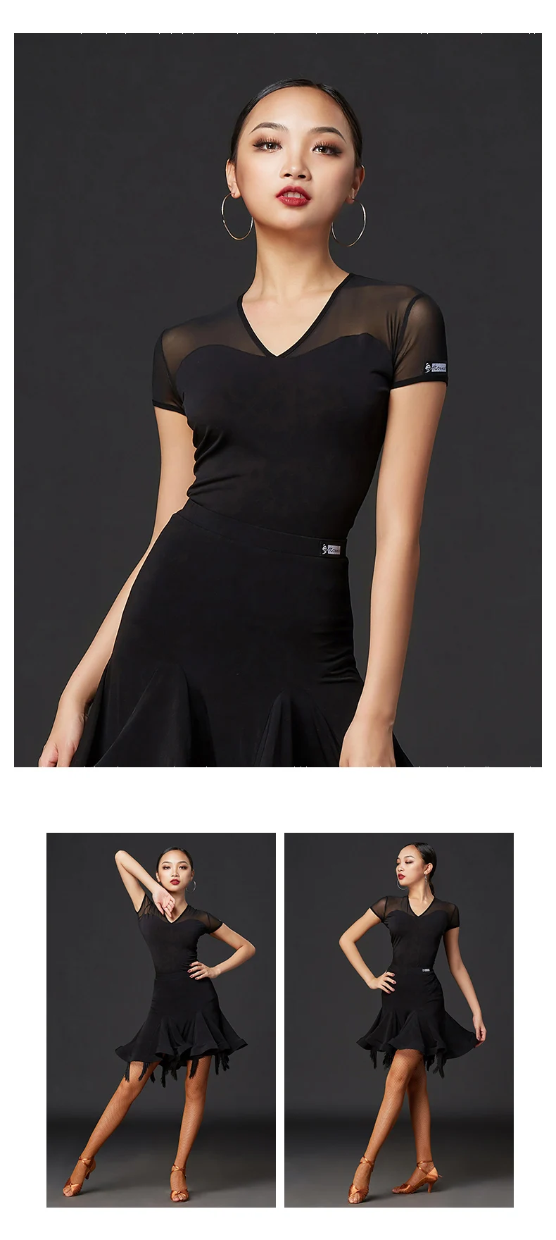 Женские топы для латиноамериканских танцев, тренировочная одежда с V-образным вырезом, женская рубашка для бальных танцев, профессиональные костюмы для соревнований DQS1007