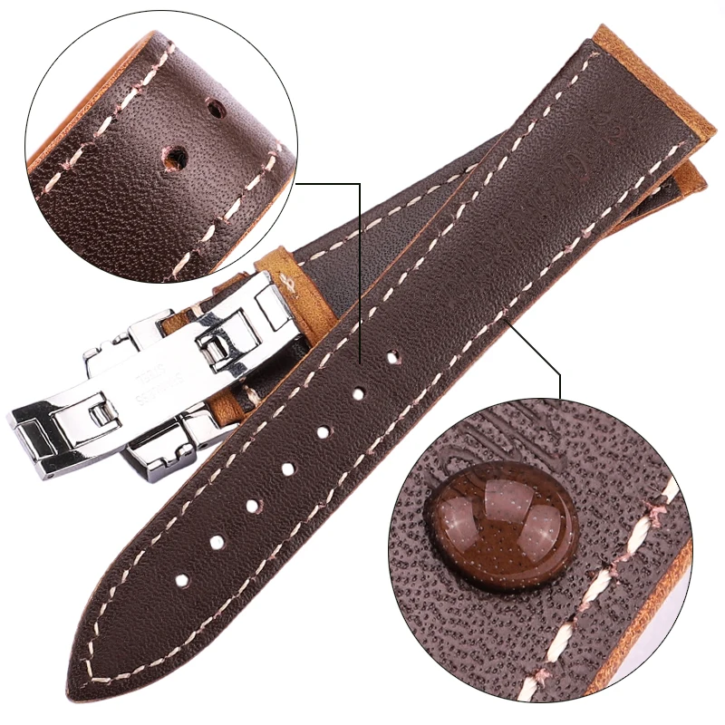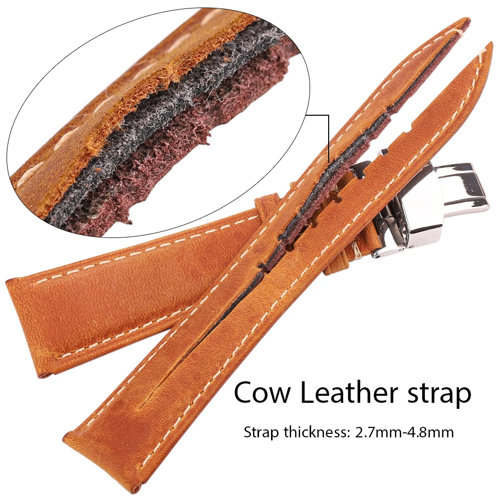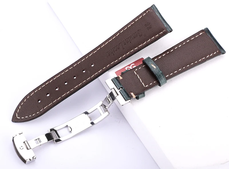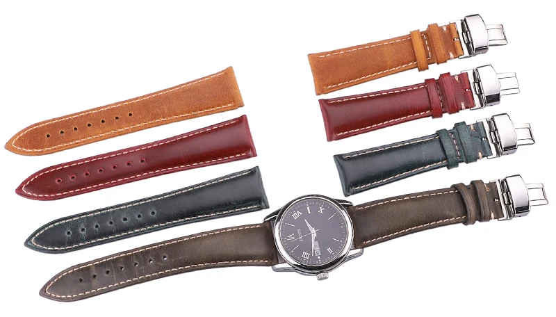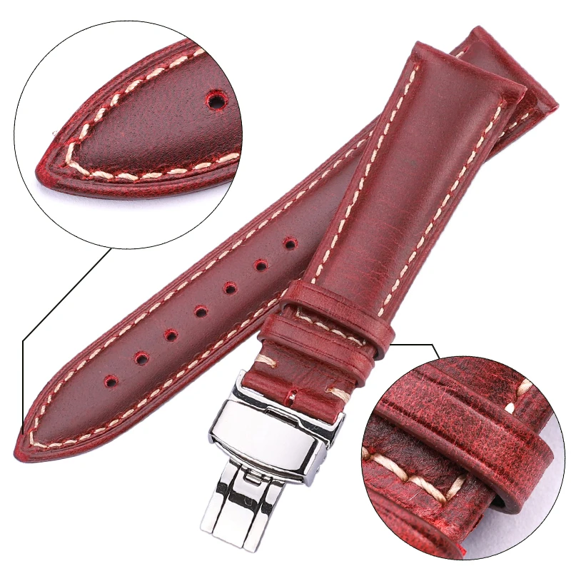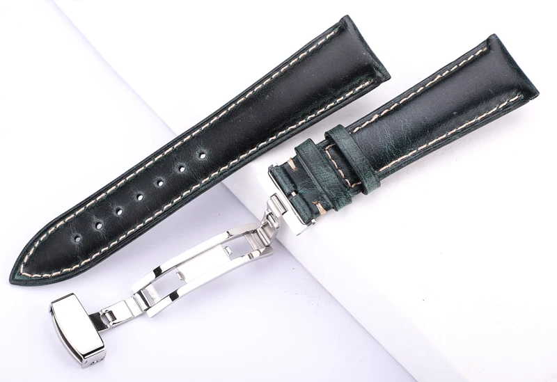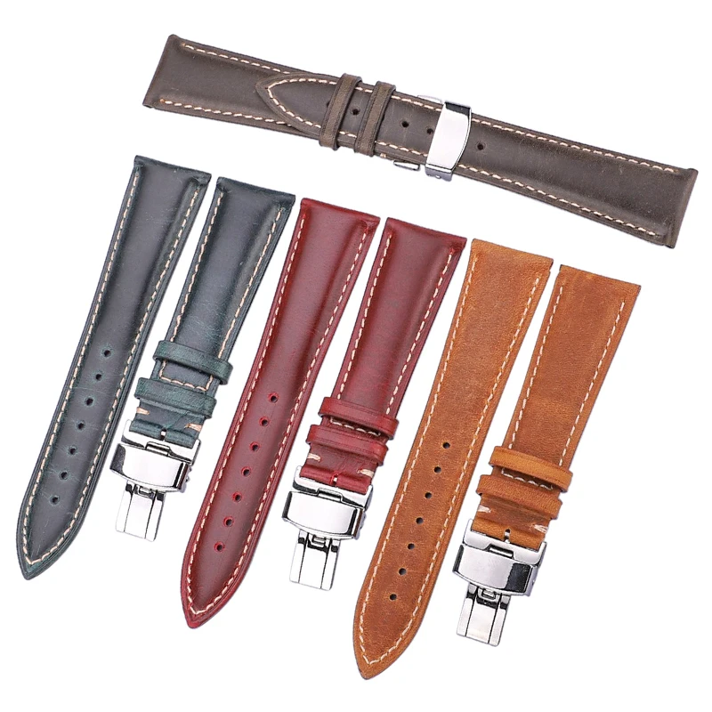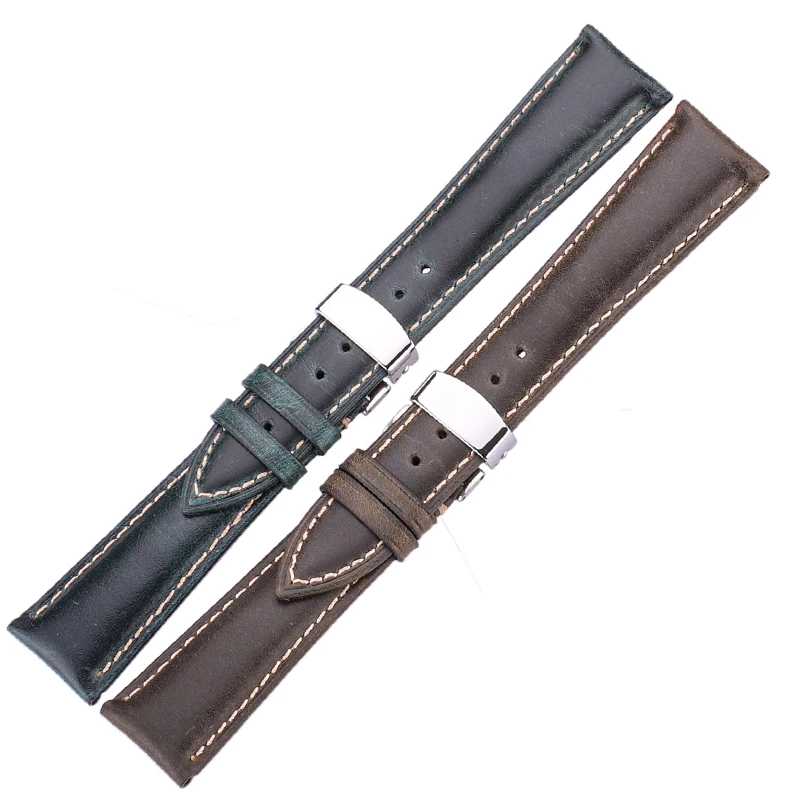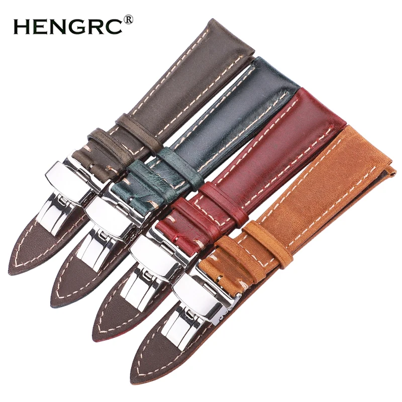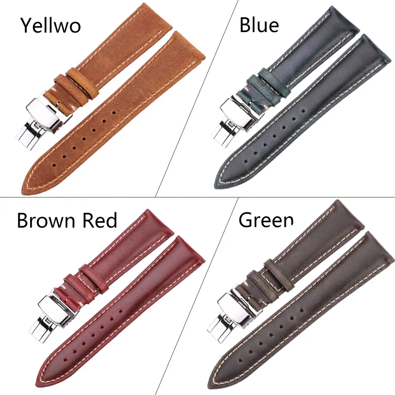 Ремешок для часов мужскойженский из натуральной кожи, вощеная воловья кожа, с застежкой-бабочкой, 18 мм 20 мм 22 мм 24 мм, синий желтый зеленый