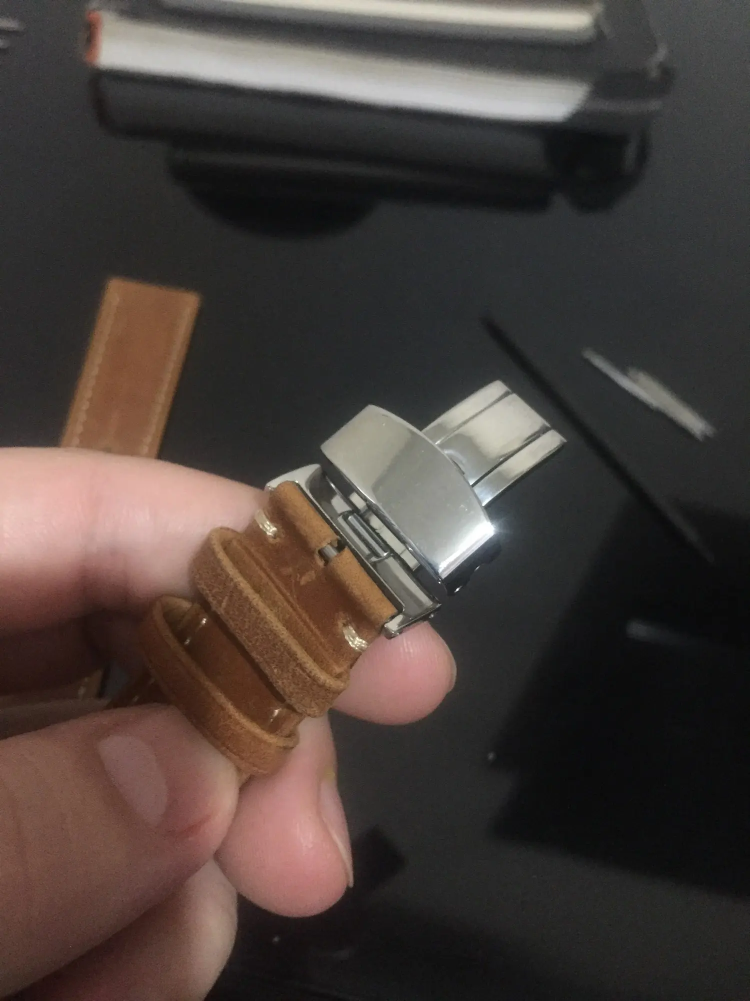 Потрясающий ремешок для часов, Единственный негатив, который у меня есть с застежкой, не имеет пускового механизма, но очень легко выйти, Просто легкая тяга. Поставляется с инструментами и дополнительными шпильками