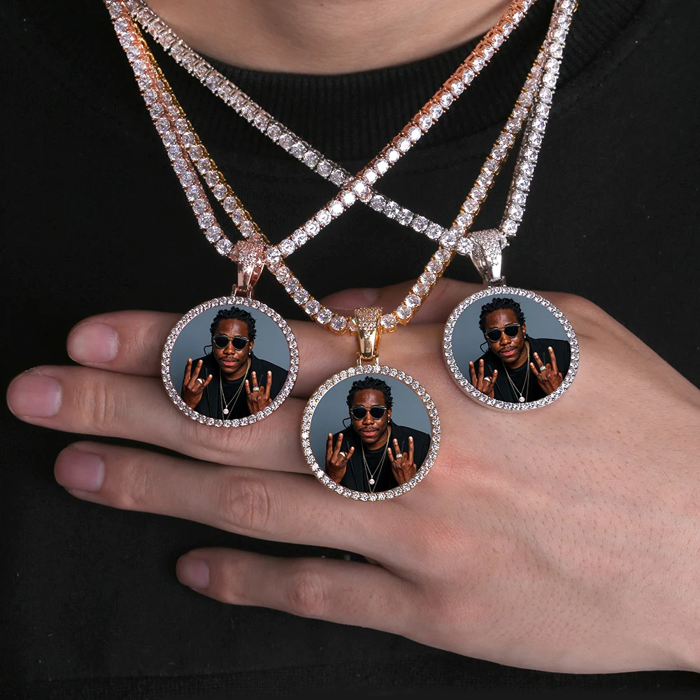 Кулон GUCY мужской с круглой задней частью, модное колье с цепочкой для тенниса, кубический циркон, Ювелирное Украшение в стиле хип-хоп, на заказ