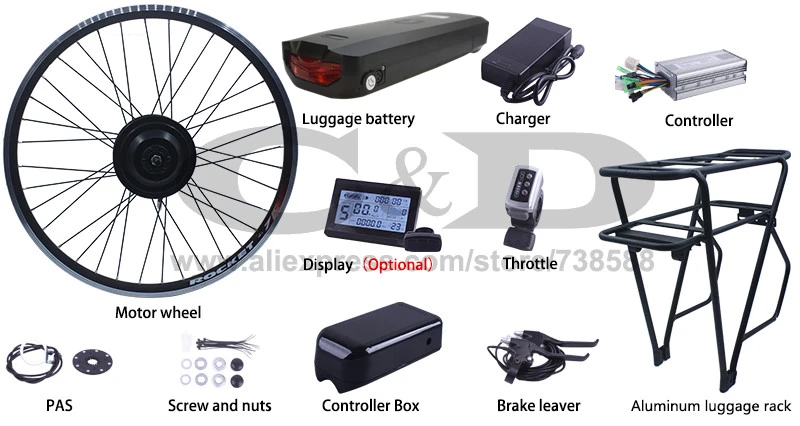 Этот комплект поставляется со всем, что вам нужно для преобразования вашего велосипеда в электронный велосипедВключая батарею.