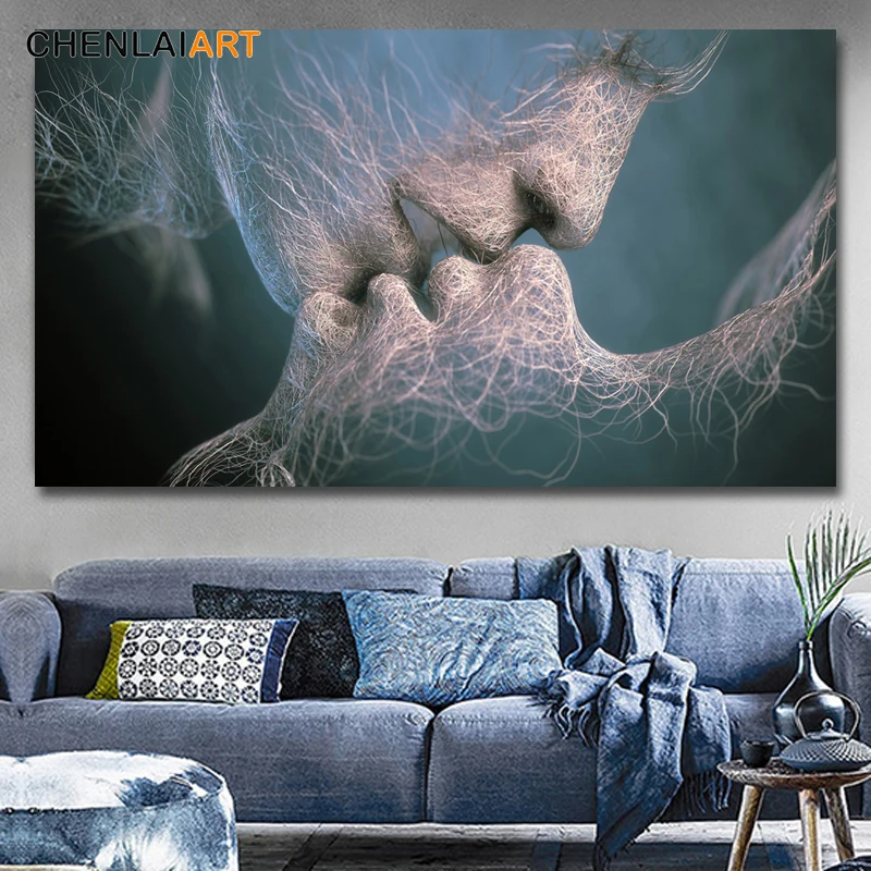 3 цвета, черный, синий, желтый, современный абстрактный поцелуй любви, холст, живопись, плакат и принты, картины для спальни, настенное искусство без рамки