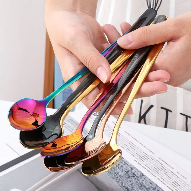8 шт.компл. ложки из нержавеющей стали с длинной ручкой, набор ложек для смешивания чая, кофе, тортов, фруктов, мороженого, десертов, чайных ложек, питьевые инструменты