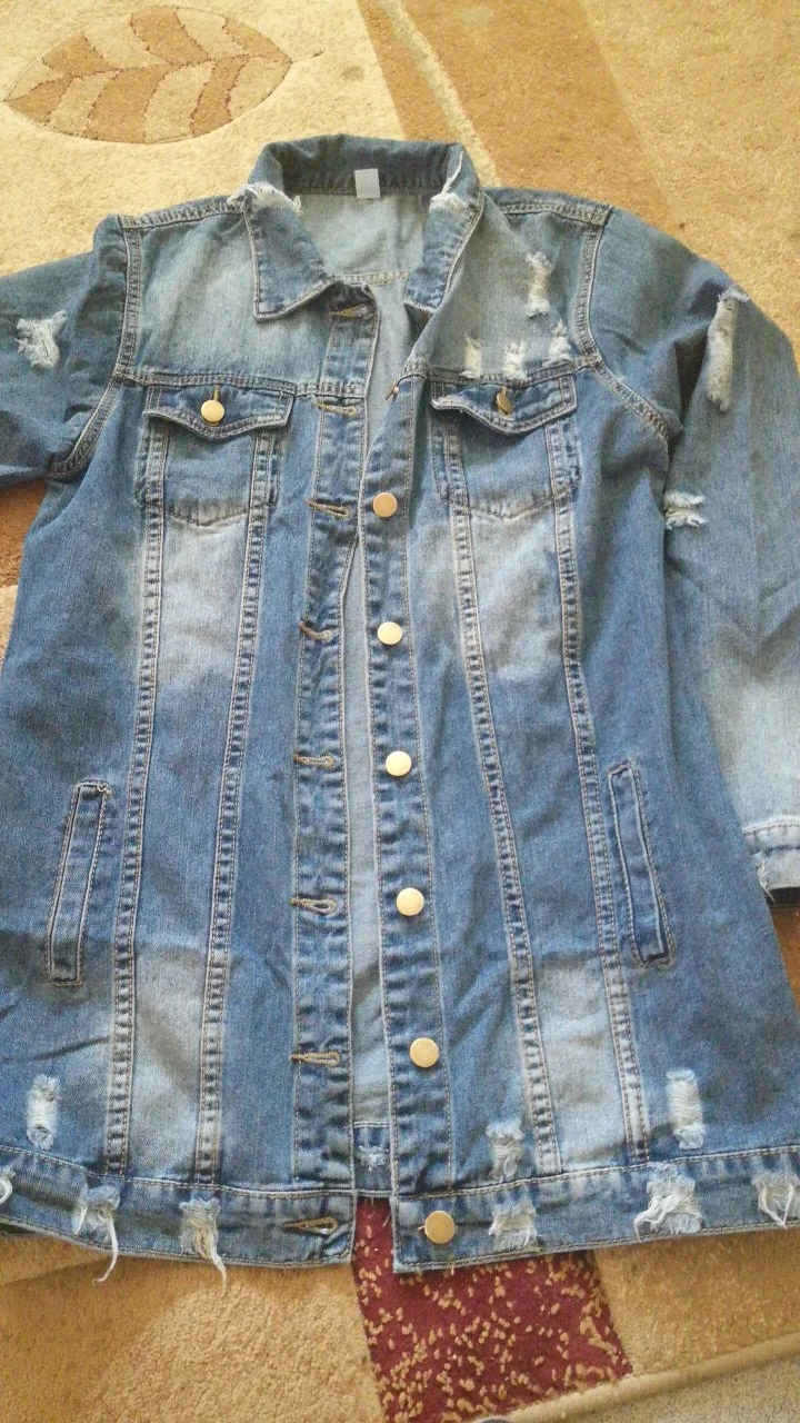 Женская джинсовая куртка с длинным рукавом, базовая свободная мешковатая куртка с дырками, модная верхняя одежда, 2021