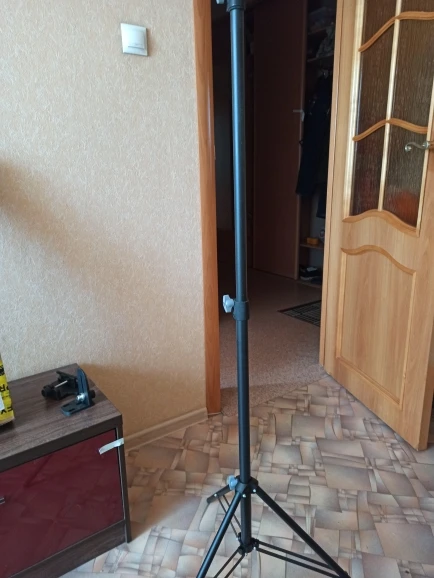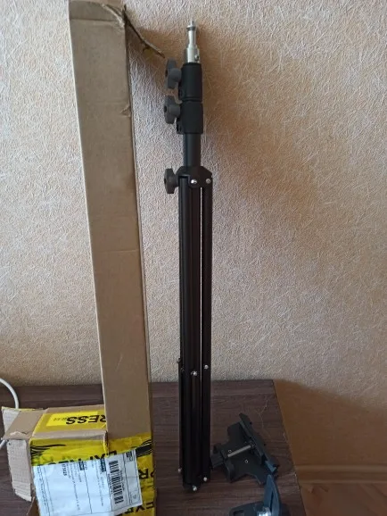 Очень приличный штатив, покупался для крепления вспышки и осветителей. Окрашен матовой чёрной краской. Раздвигается с усилием, фиксируется надежно. Доставили DPD до дверей в СПб за неделю примерно.