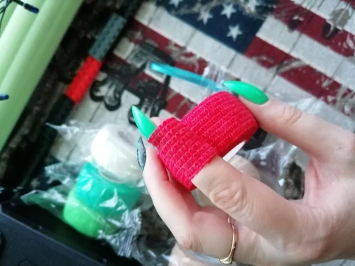 как на картинке. хорошая альтернатива белому бинту. хорошо закрывает гипс. доставка быстрая.