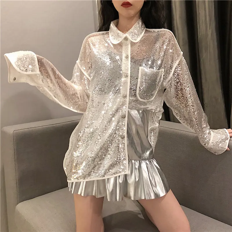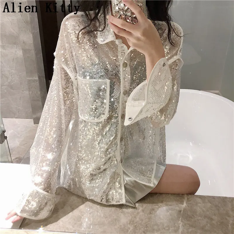 Женская Повседневная однобортная рубашка с аппликацией Alien Kitty, элегантная летняя универсальная Простая рубашка большого размера, 2021