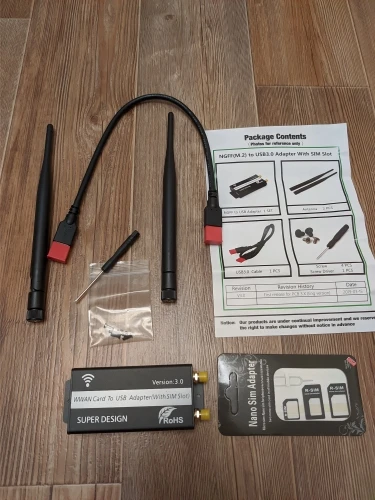 Доставка до Мордовии около месяца. По usb 2.0 работает отлично и в windows 10, и на openwrt, модем lt4220. Спасибо за комментарии, купил сразу же переходники sma - rp-sma, без проблем удалось подключить к направленной антенне yagi. Температура модема не выше 50 градусов, при минимальной нагрузке падает до 38. В комплекте идёт отвёртка, антенны круглые (с ними сигнал есть, но слабый), провод usb3.0, два комплекта винтов, переходники для сим-карт, винты для модема. Сама плата в корпусе немного болтается, но это не критично, все и так работает.