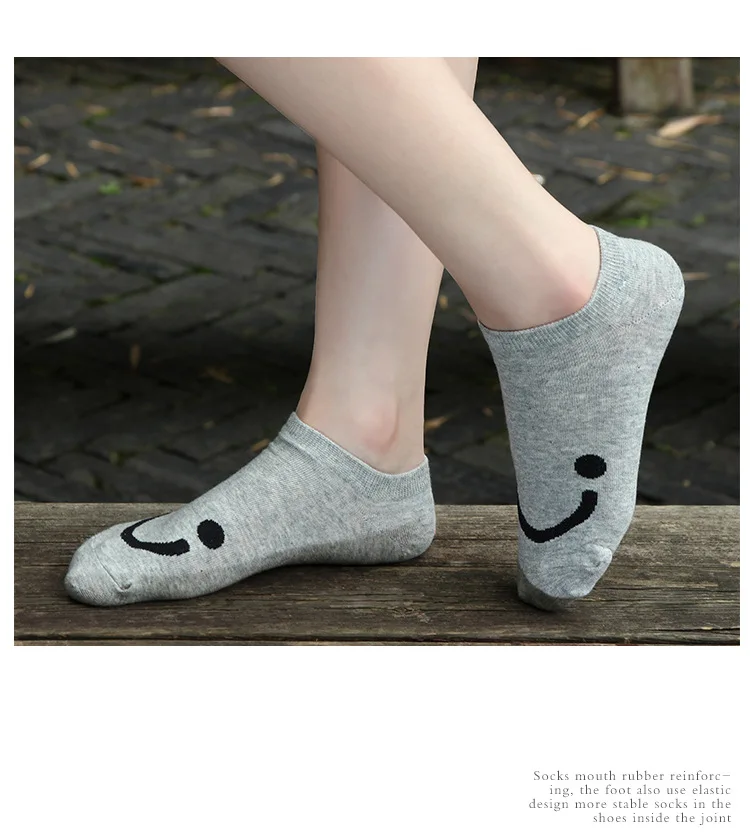 5 пар, женские хлопковые носки, удобные забавные носки со смайликом, цветные тапочки, короткие носки по щиколотку