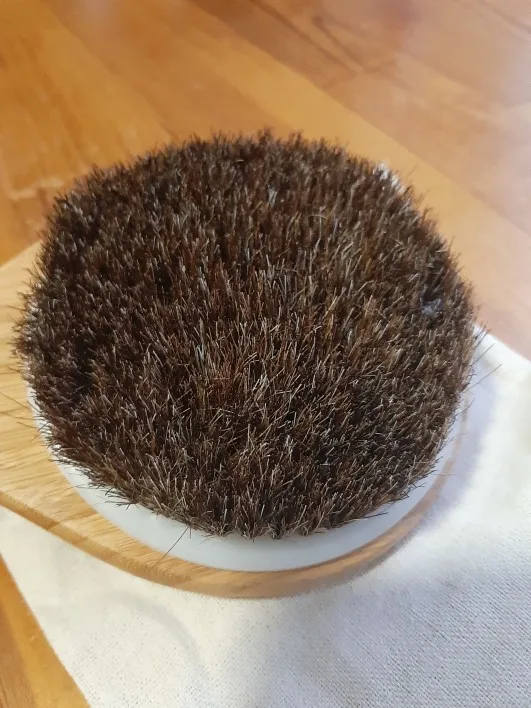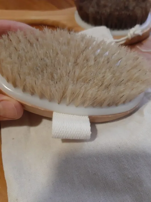 Продукт как описано, но немного деформируется. Возможно из-за транспортировки. Используется для высушенного натирания спины. Щетина удобная. Сначала я использовал его неправильно с мылом и водой, поэтому он немного пахнет.