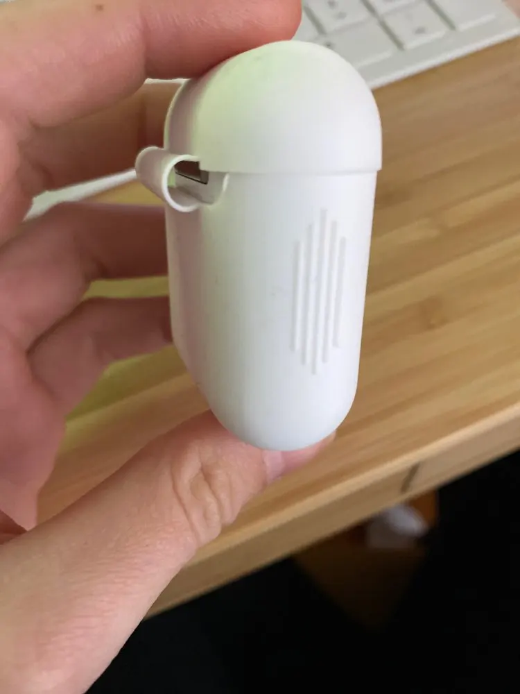 Ожидал заглушку на входе для провода питания (там просто зияет дыра), недоволен прилеганием чехла к футляру AirPods