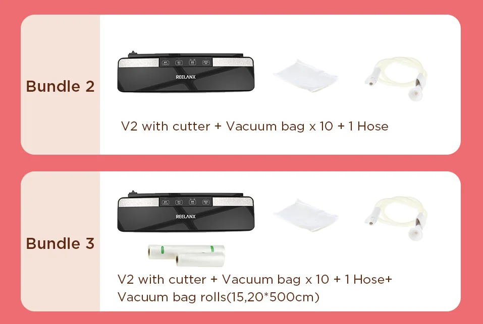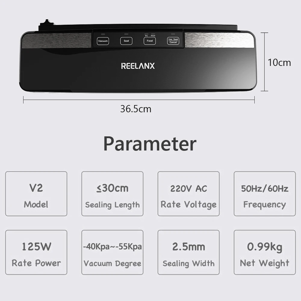 Лучший автоматический вакуумный упаковщик для пищевых продуктов REELANX Vacuum Sealer V2 125 Вт с функциями вакуумная упаковка, встроенный резак, вакуумные пакеты 10 шт бесплатно
