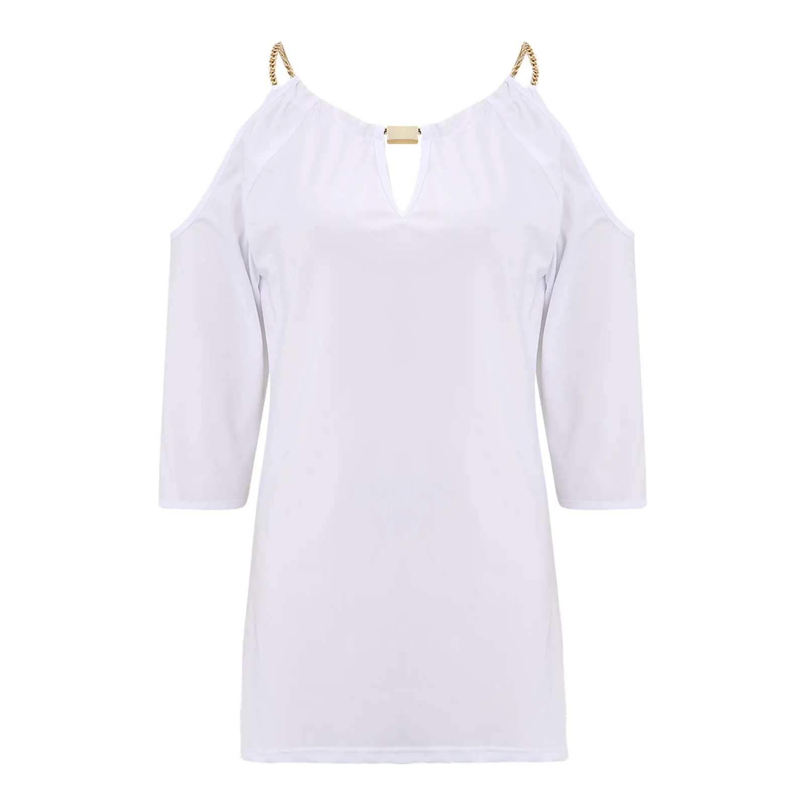Женская модная Однотонная футболка с открытыми плечами и рукавом до локтя --- летние топы с v-образным вырезом, подчеркивающие фигуру и подчеркивающие фигуру фигуры. Наслаждайтесь модной футболкой без ущерба для комфорта, классические цвета лучше всего подойдут вашему вкусу и стилю.
