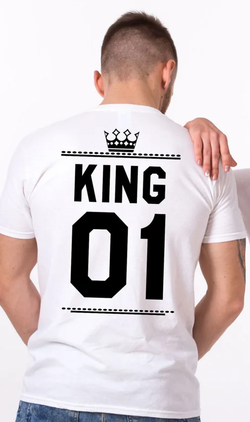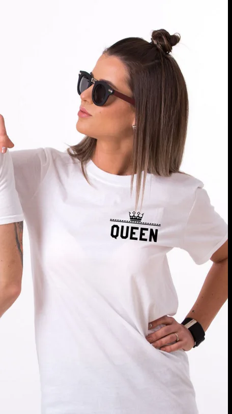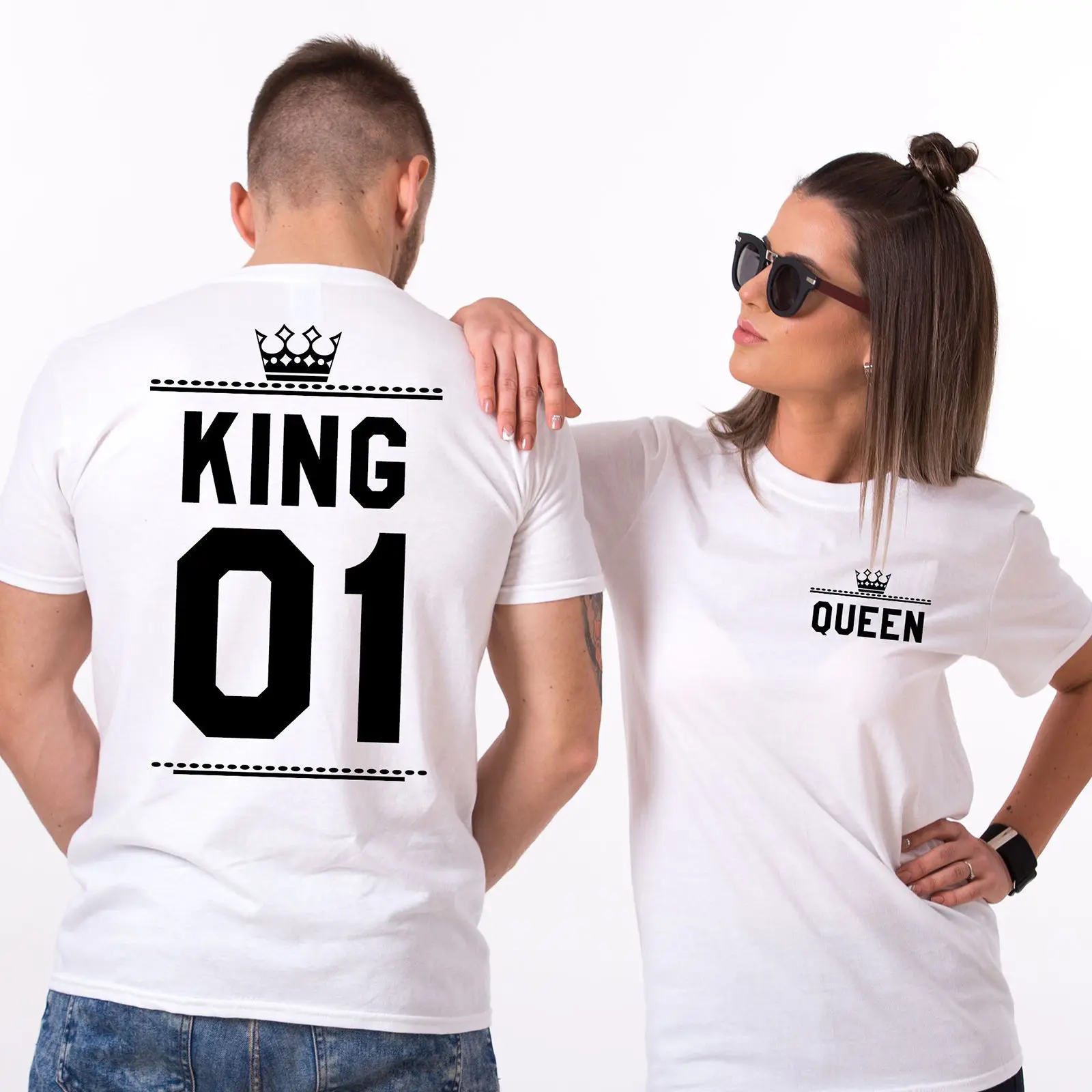 King queen Письмо печати футболка пара короткий рукав с круглым вырезом свободные футболки 2019 Лето Для женщин футболка топы Camisetas Mujer