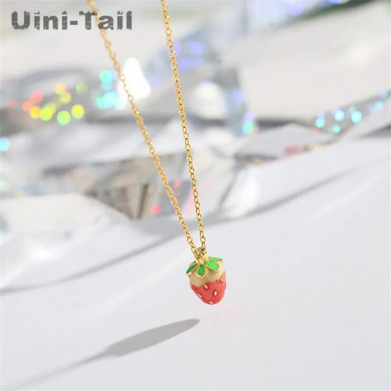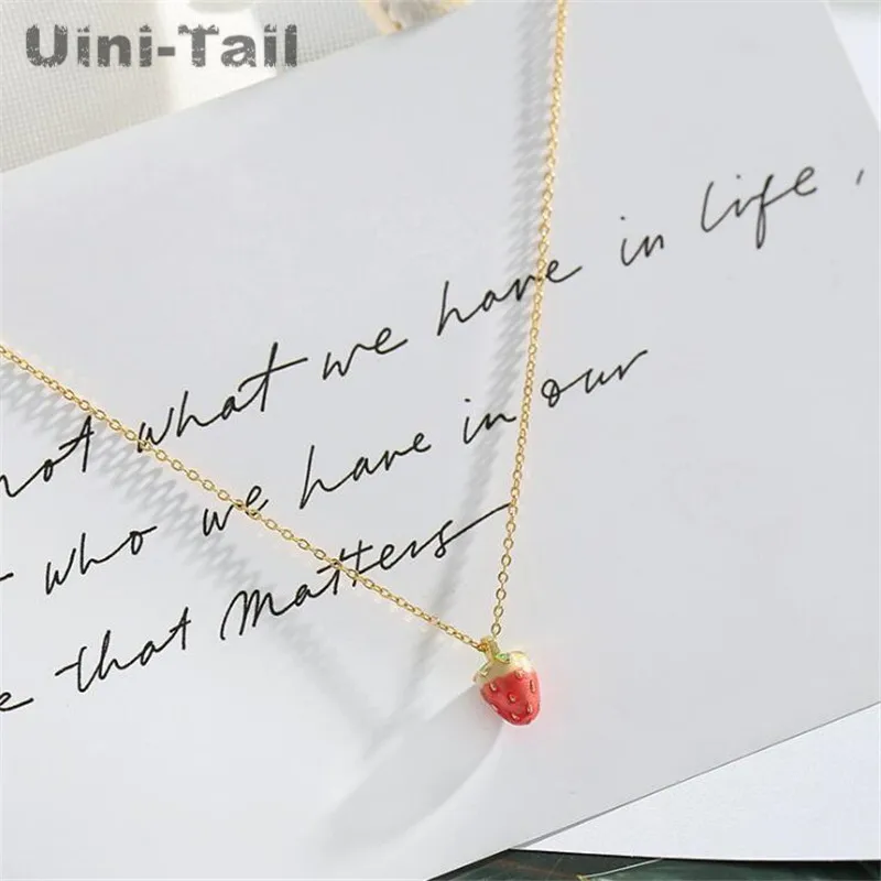 Uini-Tail, хит продаж, новинка, Стерлинговое Серебро 925 пробы, милое маленькое ожерелье с клубничкой, корейский темперамент, свежий кулон клубника, милые ювелирные изделия