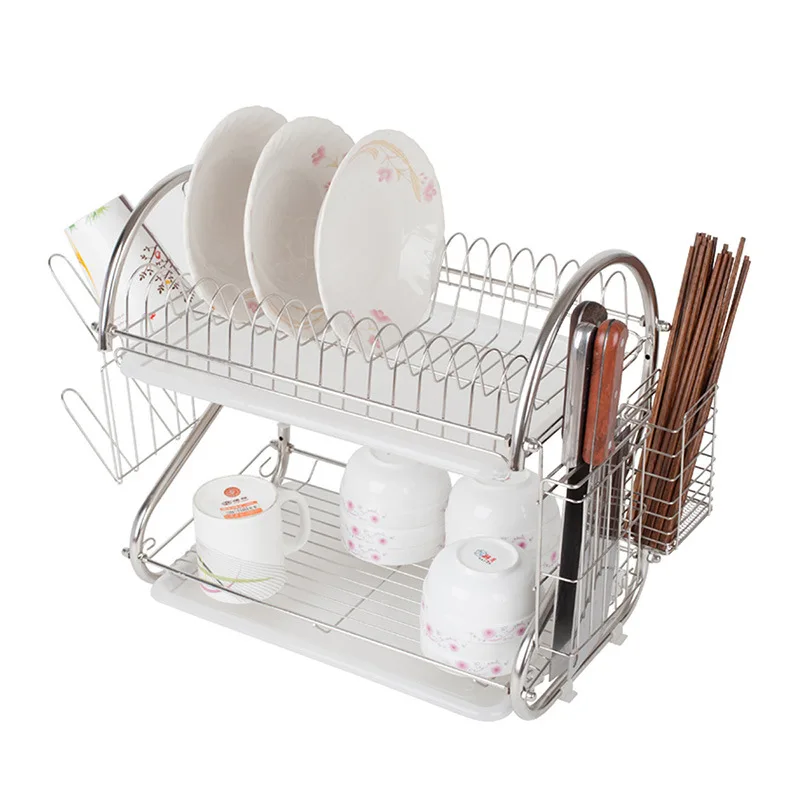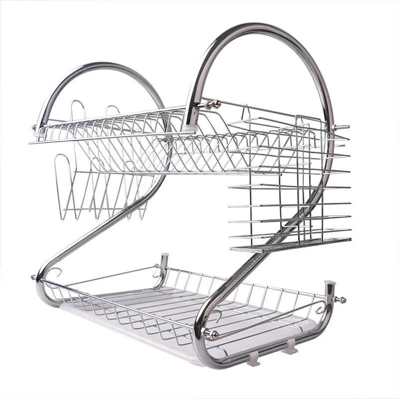 1 шт. s-образный стеллаж для посуды, 2 слоя, нержавеющая сталь, кухонная полка для тарелок, посуда, полка, тарелка, столовые приборы, стаканчики, подставка для сливной чаши