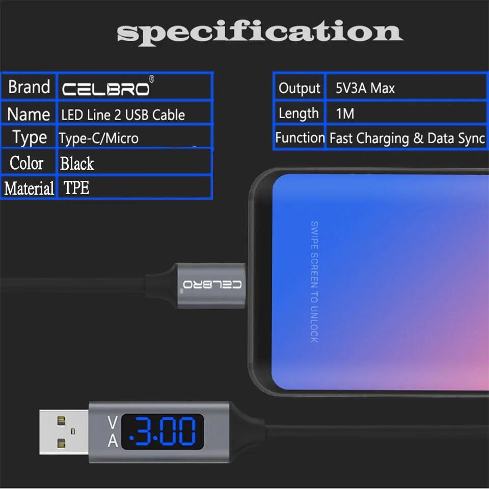 FeaturesReal-time Voltage & Current Display, Fast Charge, Tangle-free