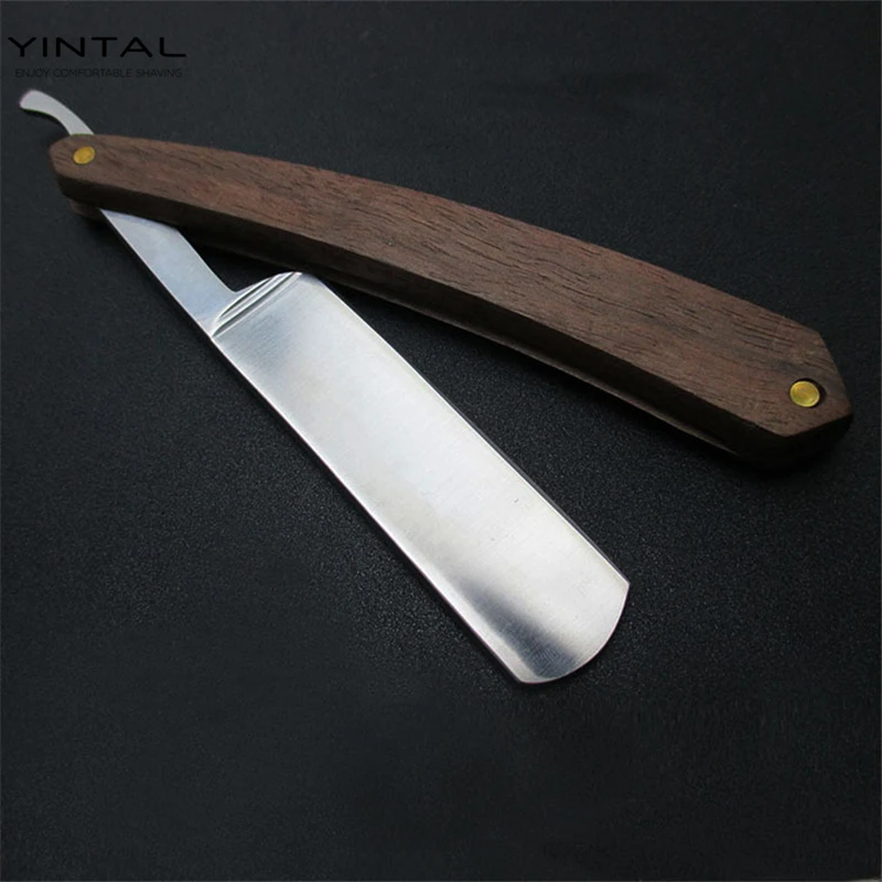 YINTAL Мужская бритва без рисунка, прямая бритва, Классическая Ручка из чистого Букового дерева, парикмахерские бритвы, заточенный предварительный нож, бритва