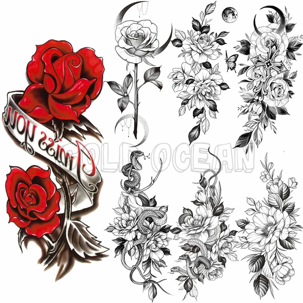 Большой Diasy временная татуировка, Цветочные наклейки для женщин, девушек, женщин, боди-арт, ног, водонепроницаемая имитация татуировки, бумага 3D Роза