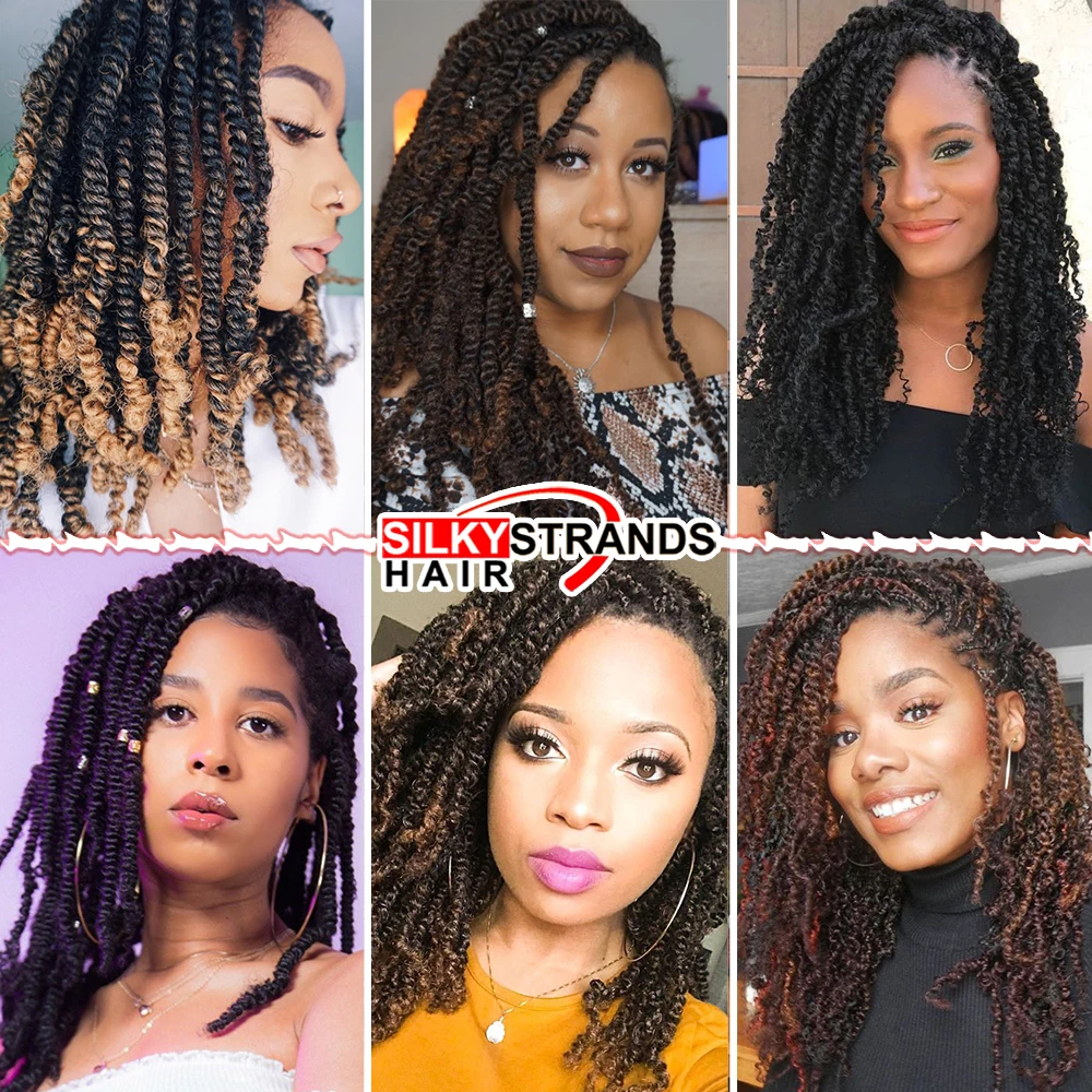 Пушистые весенние вьющиеся волосы для наращивания, синтетические накладные волосы Nubian Bounce Ombre Kanekalon, предварительно растянутые плетеные волосы, черные шелковистые