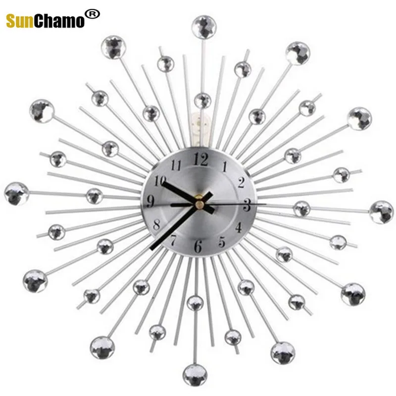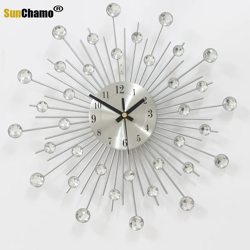 Металлические настенные часы, модные современные украшения, серебряные часы с Стразы, дизайнерские Роскошные художественные часы для гостиной, подарок на новоселье