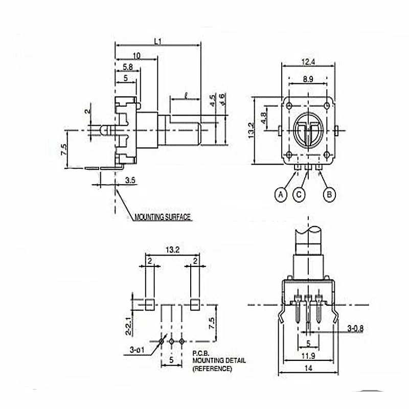 5 шт. 360 градусов Поворотный кодировщик EC12 RE12 аудио кодирование 3-контактный 24 положения без кнопочного переключателя ручки 12 мм 15 мм