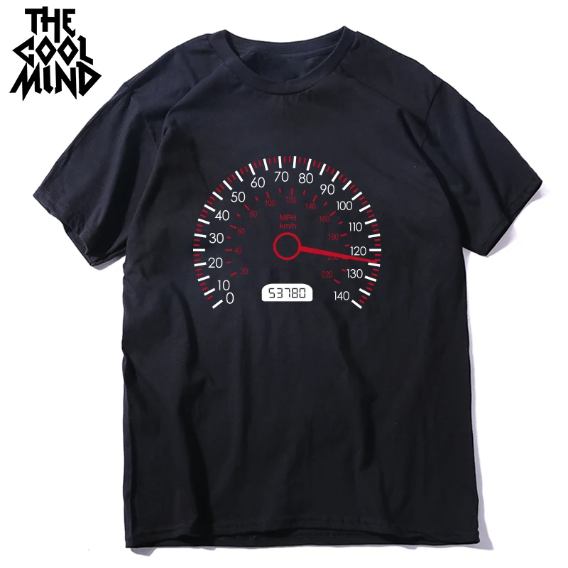 Футболка COOLMIND мужская с круглым вырезом, тенниска из 100% хлопка, повседневная майка с принтом машины, измеритель скорости, лето