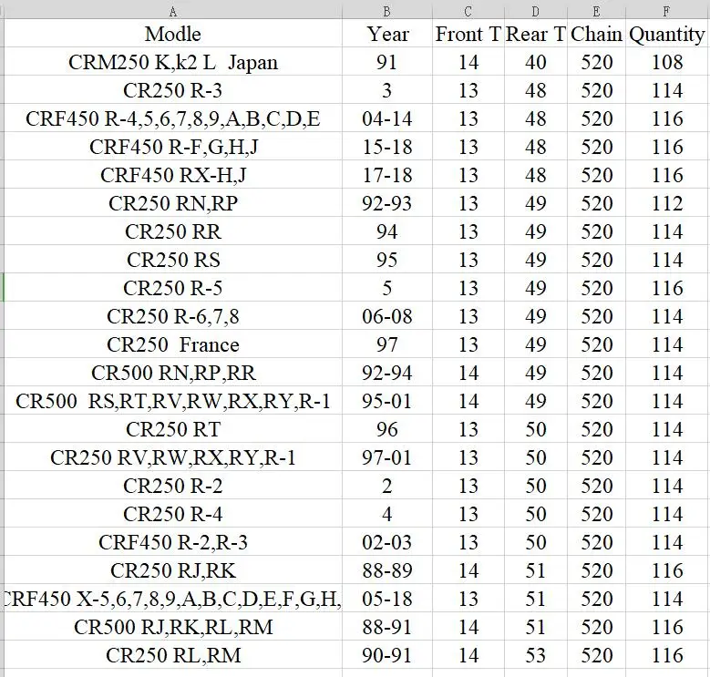 Мотоцикл Передняя Задняя звездочка и цепь набор с 520 комплектами для Honda Мотор велосипед CRM250 CR250 R CRF450 X CR250 RL RM CR500 RK RM