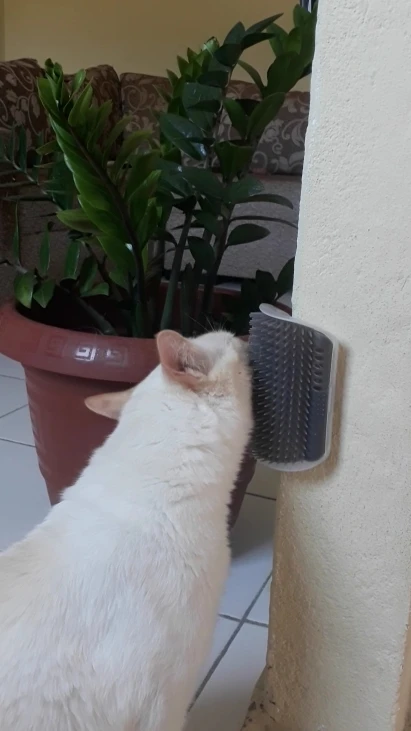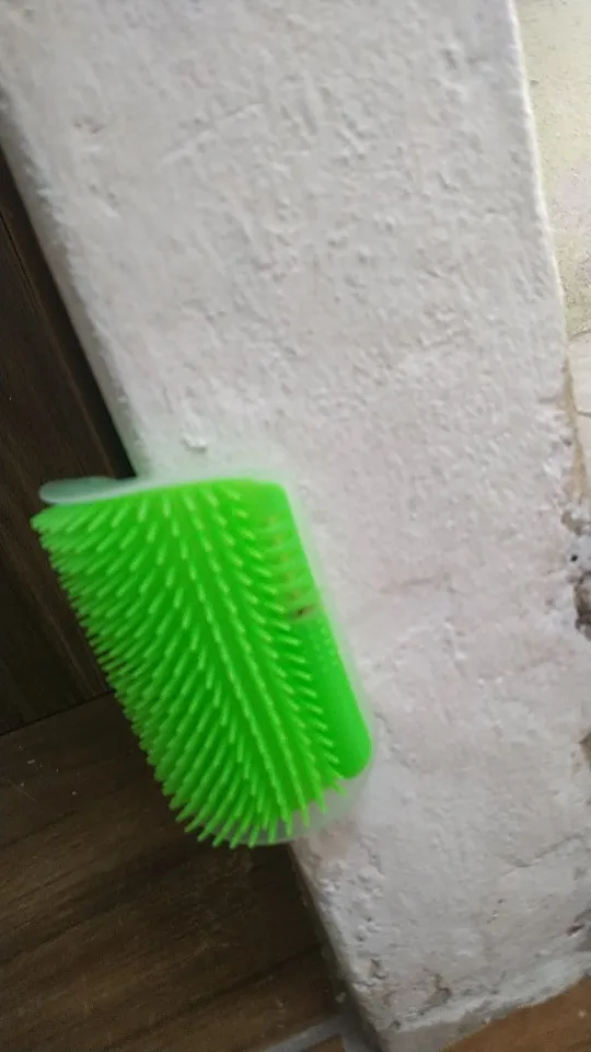 щётка как в описании. есть саморезики и двухсторонний скотч для крепления. плюс мята для котов. только цвет не неоновый, а простой зелёный. а с продавцом не общалась. шло довольно долго, посылка торчала на таможне в России. хотя ждала только эту щётку.