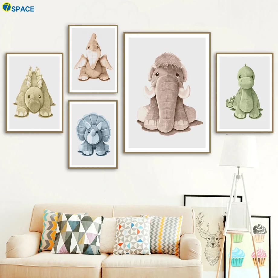 Динозавр слон Кукла Детская Искусство принты стены искусства холст живопись скандинавские плакаты и принты настенные картины декор детской комнаты
