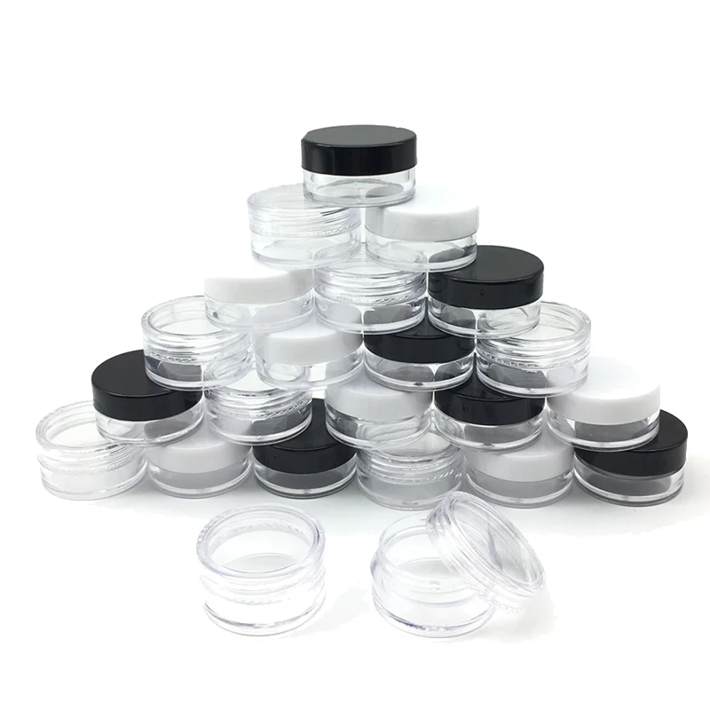50 шт. 5 г банка для макияжа косметический образец пустой контейнер пластиковая круглая крышка маленькая бутылка 5 мл с черно-белой прозрачной крышкой
