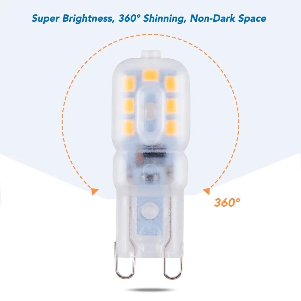 1. Тип напряжения: AC220-240V, идеально заменяет галогенную лампу G9 непосредственно.