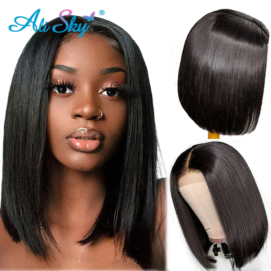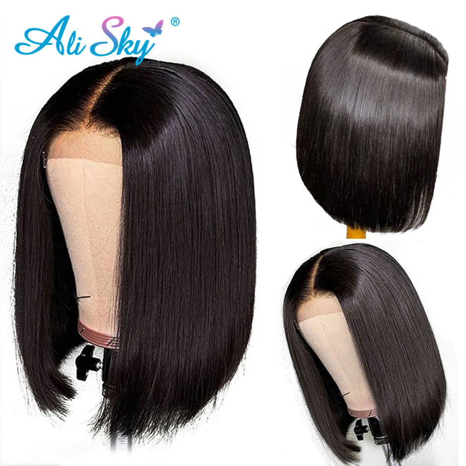 Бразильский прямой парик фронта шнурка короткий Боб предварительно выщипанный парик Боб парик фронта шнурка человеческих волос для женщин 13x6 HD парик фронта шнурка al