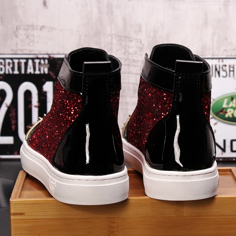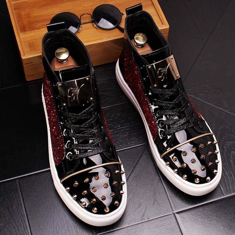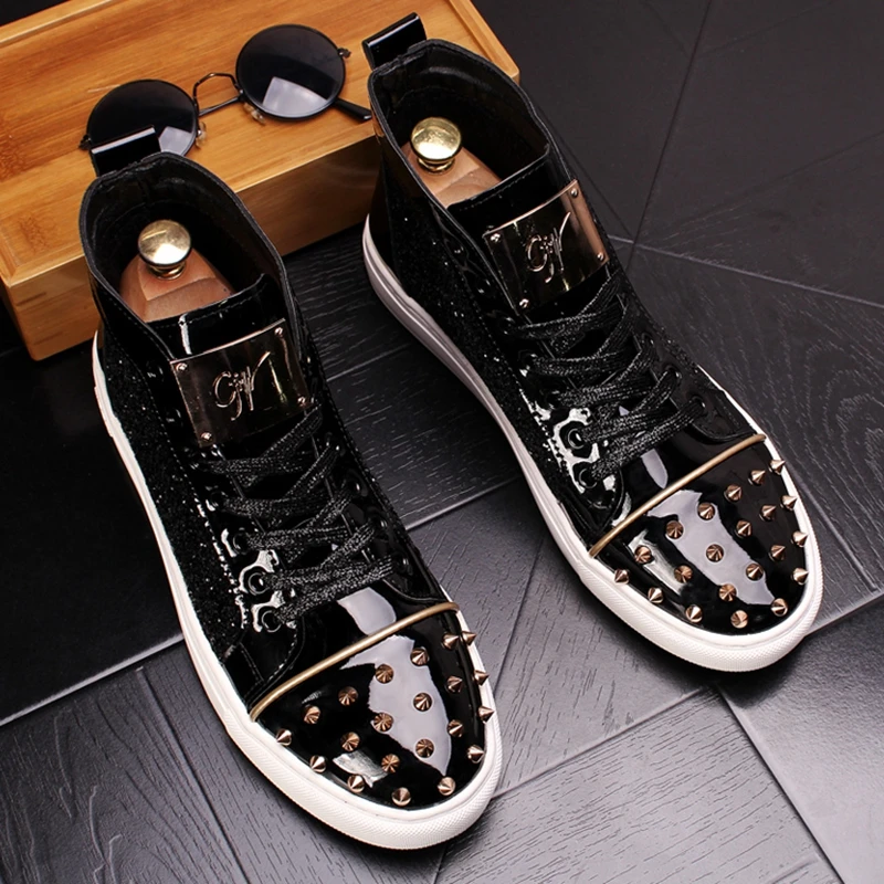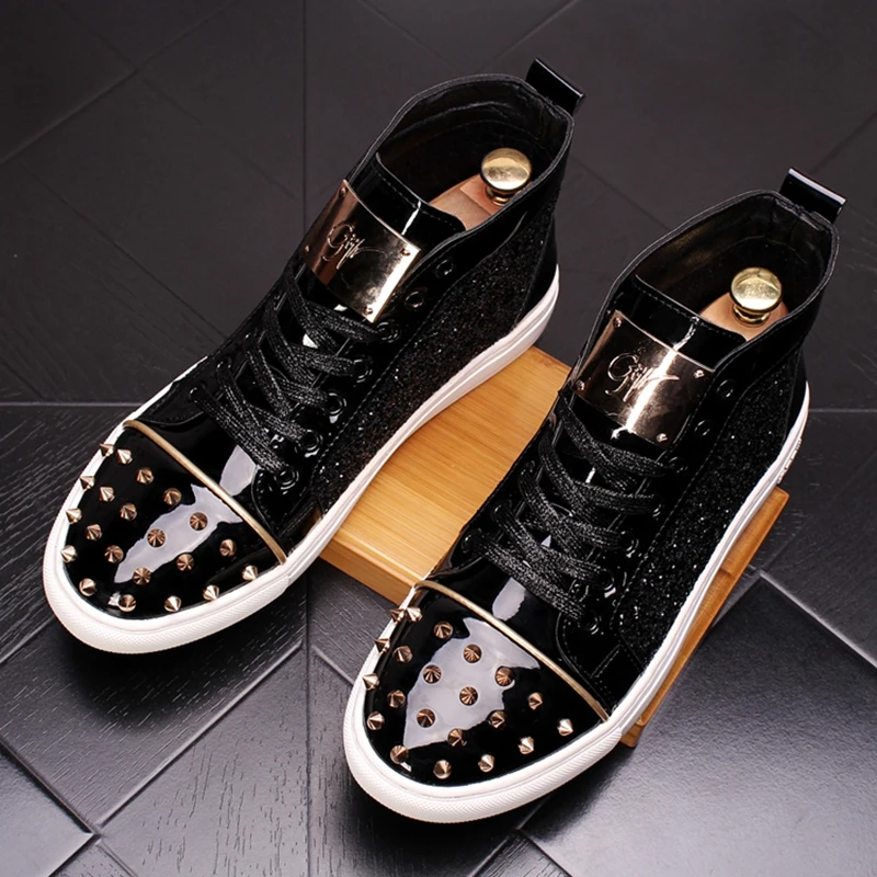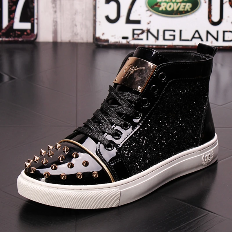CuddlyIIPanda мужские модные панк-кроссовки металлические повседневные туфли на платформе с высоким берцем, Полуботинки на плоской подошве, мужские туфли с заклепками для выпускного вечера