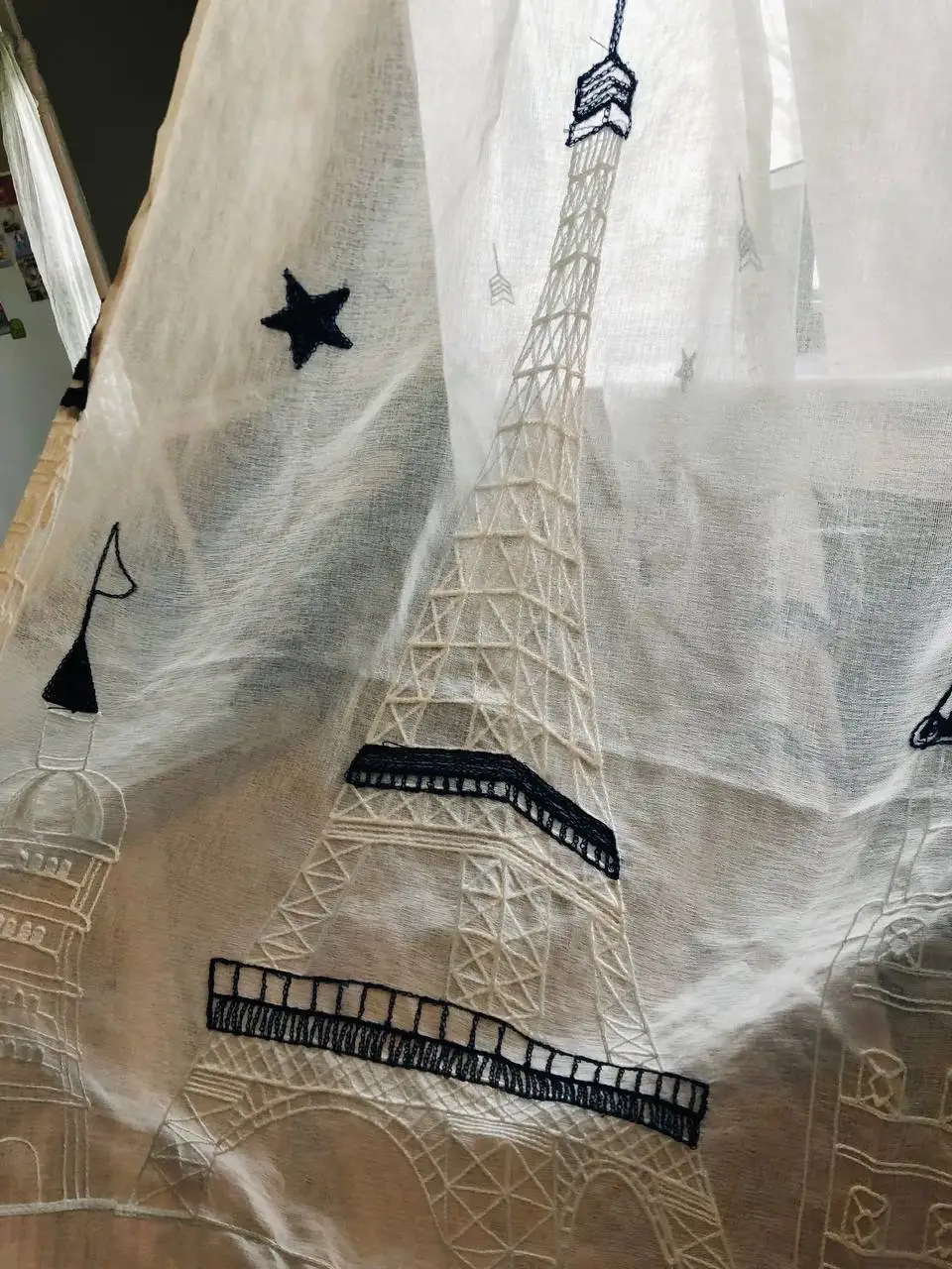Белая вуаль, оконные шторы для гостиной, детская спальня, пасторальная звезда, башня, вышитая Фата, отвесная вуаль, тюль